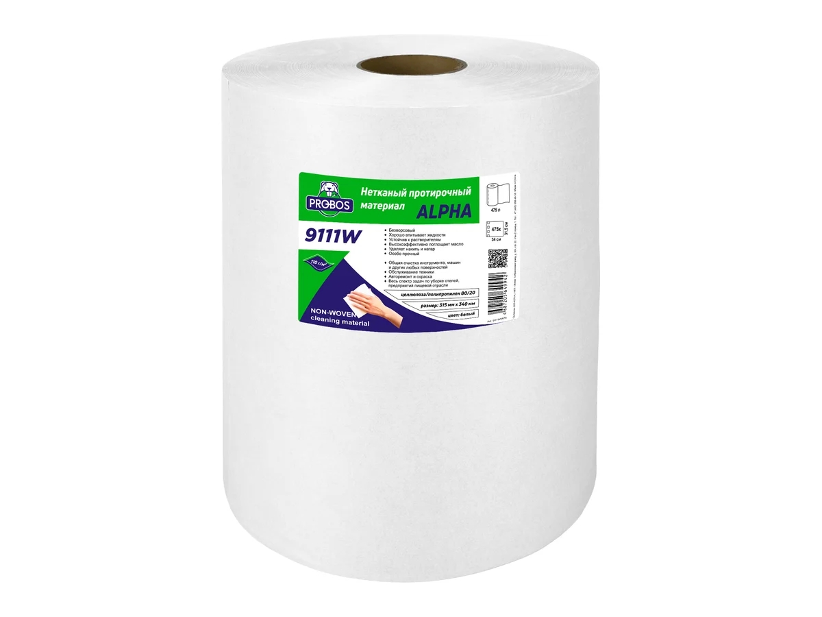 Профессиональный нетканый протирочный материал PROBOS ALPHA 9111W на основе целлюлозы и полипропилена. Идеально подходят для любых задач связанных с очисткой поверхностей, оборудования, инструмента. Обладает повышенной прочностью, в ряде задач заменяет традиционную ветошь. Хорошо впитывает жидкости, стойкий к растворителям и чистящим средствам