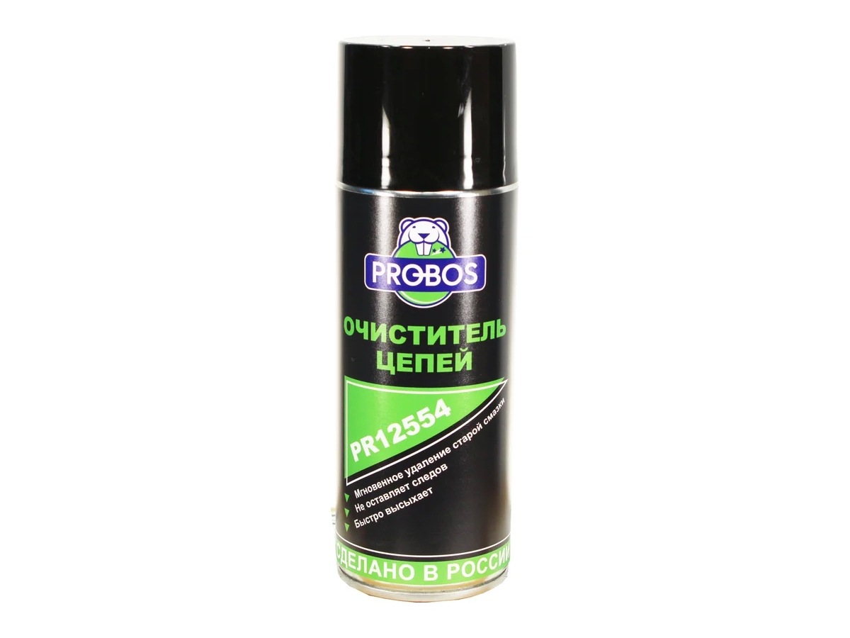 Очиститель цепей PROBOS 520 мл, аэрозоль PR12554 gрименяется для очистки приводных цепей велосипедов, мотоциклов, скутеров, снегоходов (со всеми видами втулок: O-ring, X-ring, Z-ring, W-ring) и обслуживания промышленного оборудования с цепными приводами.