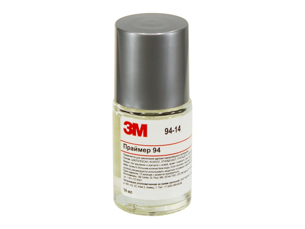 Праймер 94 14 мл 3М 4627189351455 предназначен для повышения клейкости клейких лент к таким поверхностям как полипропилен, полиэтилен, ABS, бетон, сочетание PET\PBT, дерево, металл и стекло. Наносится тонким слоем, что обеспечивает минимальный расход. Быстро высыхает.