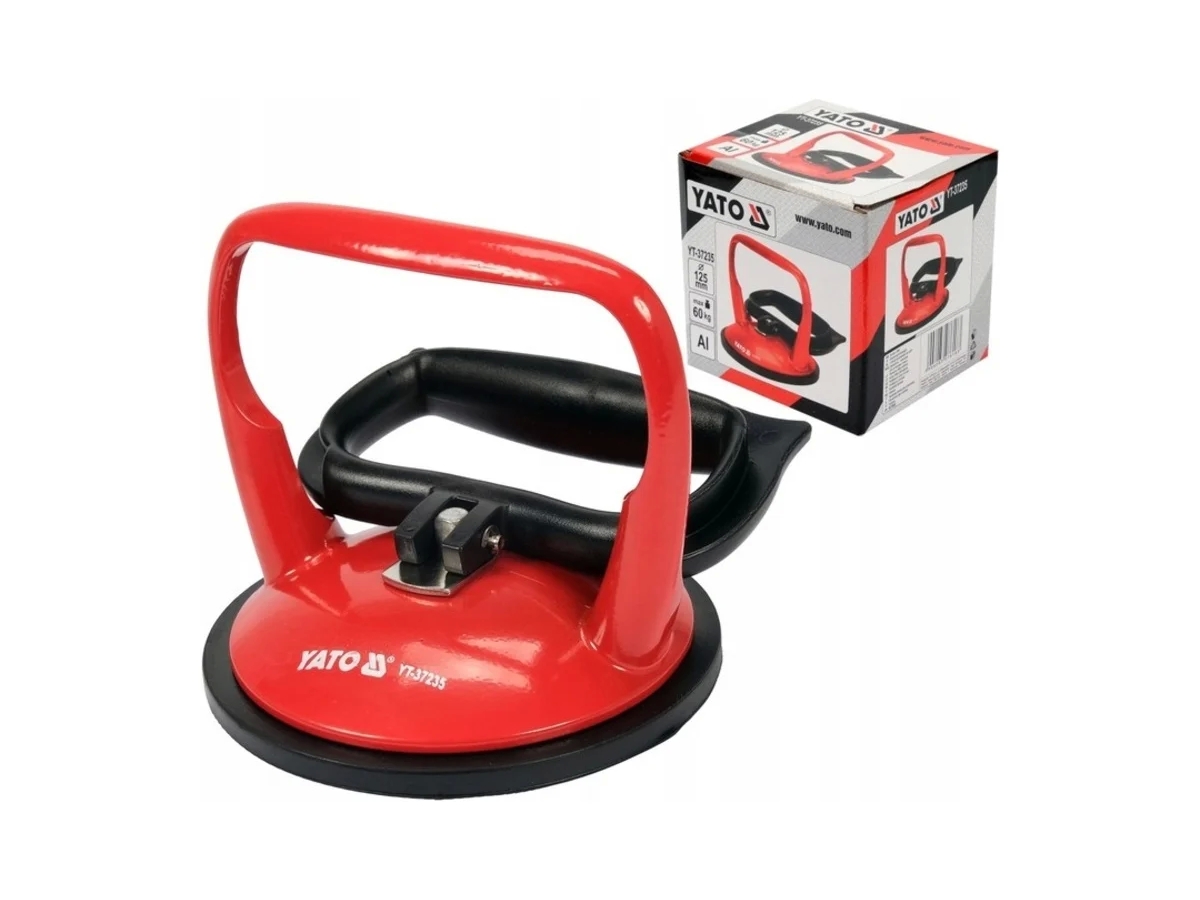 Держатель-присоска для стекол YATO 125 мм YT-37235 предназначен для переноски стекла. Легкий корпус, устойчивый к механическим повреждениям, изготовлен из алюминия. Ручка имеет плоскую резиновую присоску диаметром 125 мм.