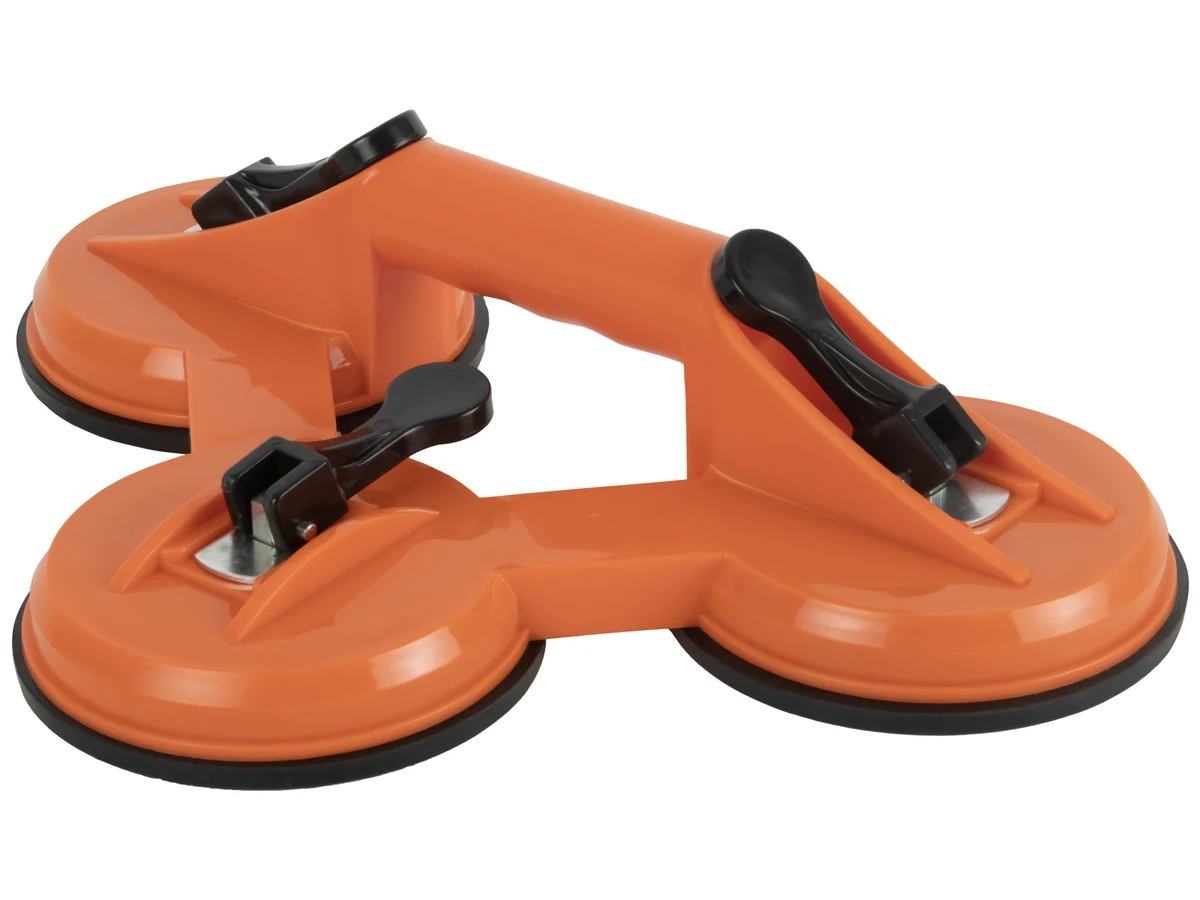 Стеклодомкрат (вакуумный захват) WDK-65613 с тройной присоской диаметром 115 мм разработан для безопасного и удобного перемещения стекол, зеркал, керамогранита и других гладких поверхностей, выдерживая вес до 130 кг. Три вакуумные присоски обеспечивают усиленное сцепление и надежность, делая этот захват незаменимым инструментом при транспортировке тяжелых и крупных объектов.