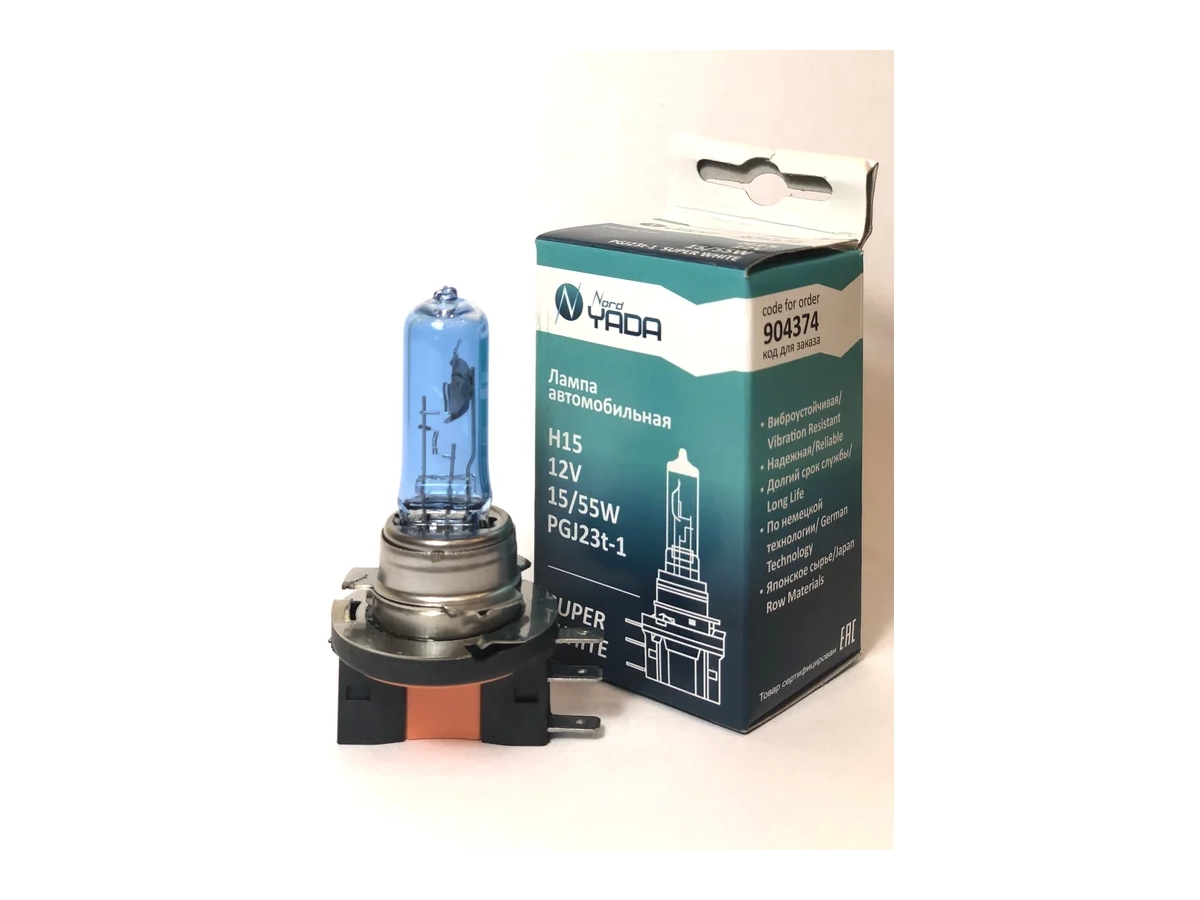 Лампа Nord-Yada H15 12V 15/55W PGJ23T-1 Super white 904374 - источник света, у которого светящим элементом является вольфрамовая спираль. У лампы есть большой запас срока службы. Способна выдержать большое количество включений и выключений. Виброустойчивая, выполнена по немецкой технологии с применением японского сырья.