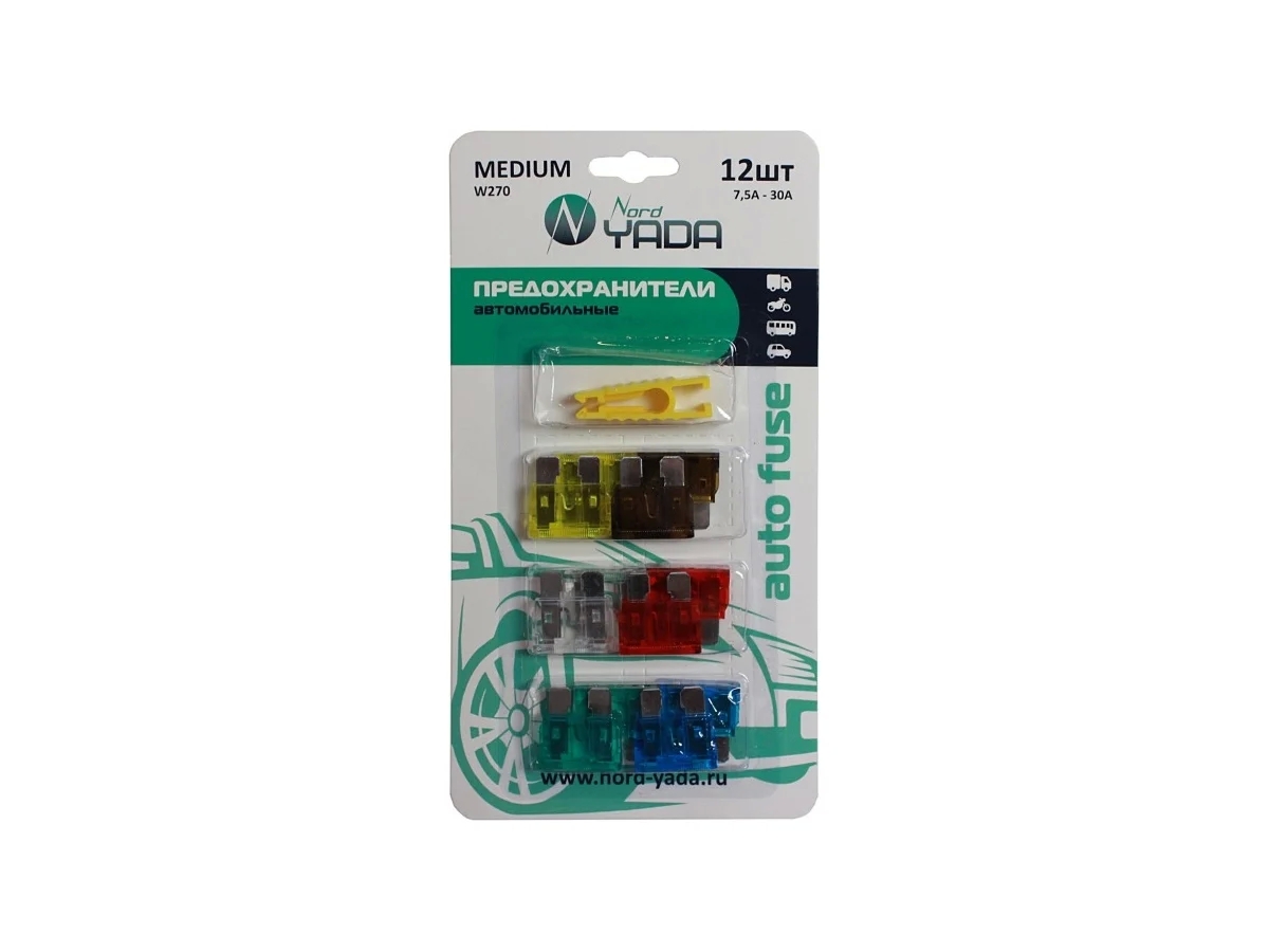 1251, Предохранитель Nord-Yada MEDIUM стандарт набор 12 шт, с пинцетом, 7.5/10/15/20/25/30 А 902258, 902258, 79.00р., 21023776, Nord-Yada, Автомобильные предохранители