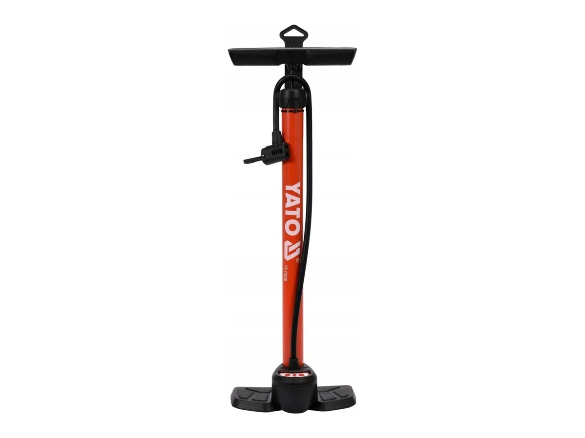 Ручной насос с максимальным давлением 8 бар. Оборудован электронным манометром. Имеет универсальную головку для накачивания автомобильных и велосипедных клапанов. Твердая основа позволяет легко держать насос ногой.