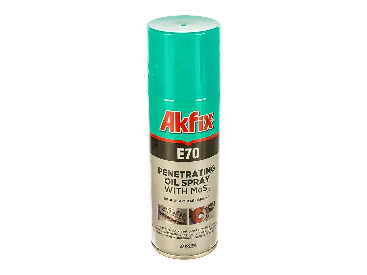 Проникающая смазка 200 мл Akfix E70 YA020 содержит в своем составе сульфат молибдена. Этот компонент увеличивает качество работы подвижных деталей и существенно снижает трение.
