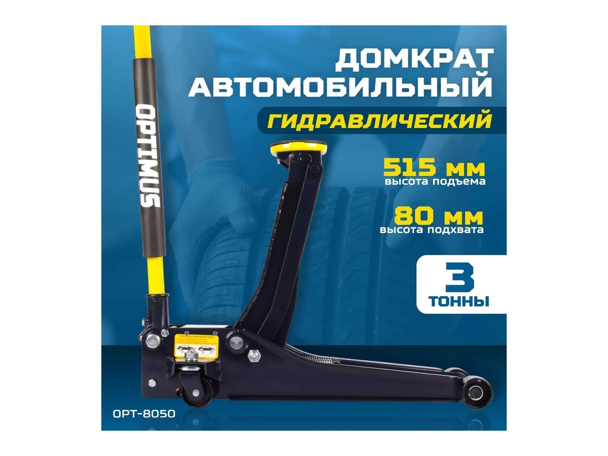Подкатной гидравлический домкрат Optimus г/п 3,0 т высота 80-515 мм OPT-8050 предназначается для профессионального использования в шиномонтажных мастерских. Благодаря увеличенным колесам устройство быстро и легко перемещается.