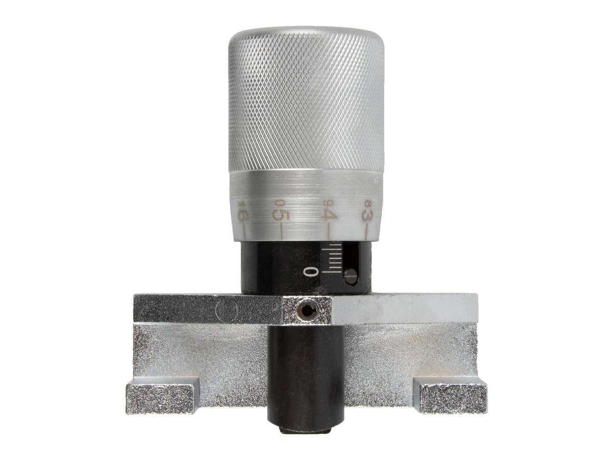 Микрометрический винт для определения степени натяжения. Применим для работы с поликлиновыми, зубчатыми и другими ремнями. Один оборот рукоятки составляет 360 градусов и соответствует величине перемещения толкателя на 1мм.