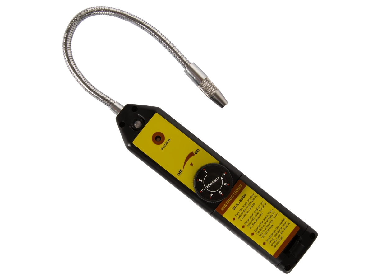 Универсальный течеискатель WJL-6000 предназначен для точного и быстрого обнаружения утечек хладагентов и других веществ с содержанием хлора, фтора или брома. Прибор обнаруживает широкий спектр ГФУ, ГХФУ, ХФУ и СН, включая R134a, R404a, R1234yf, R22, R12 и другие. Течеискатель полностью автоматический и имеет регулятор чувствительности.