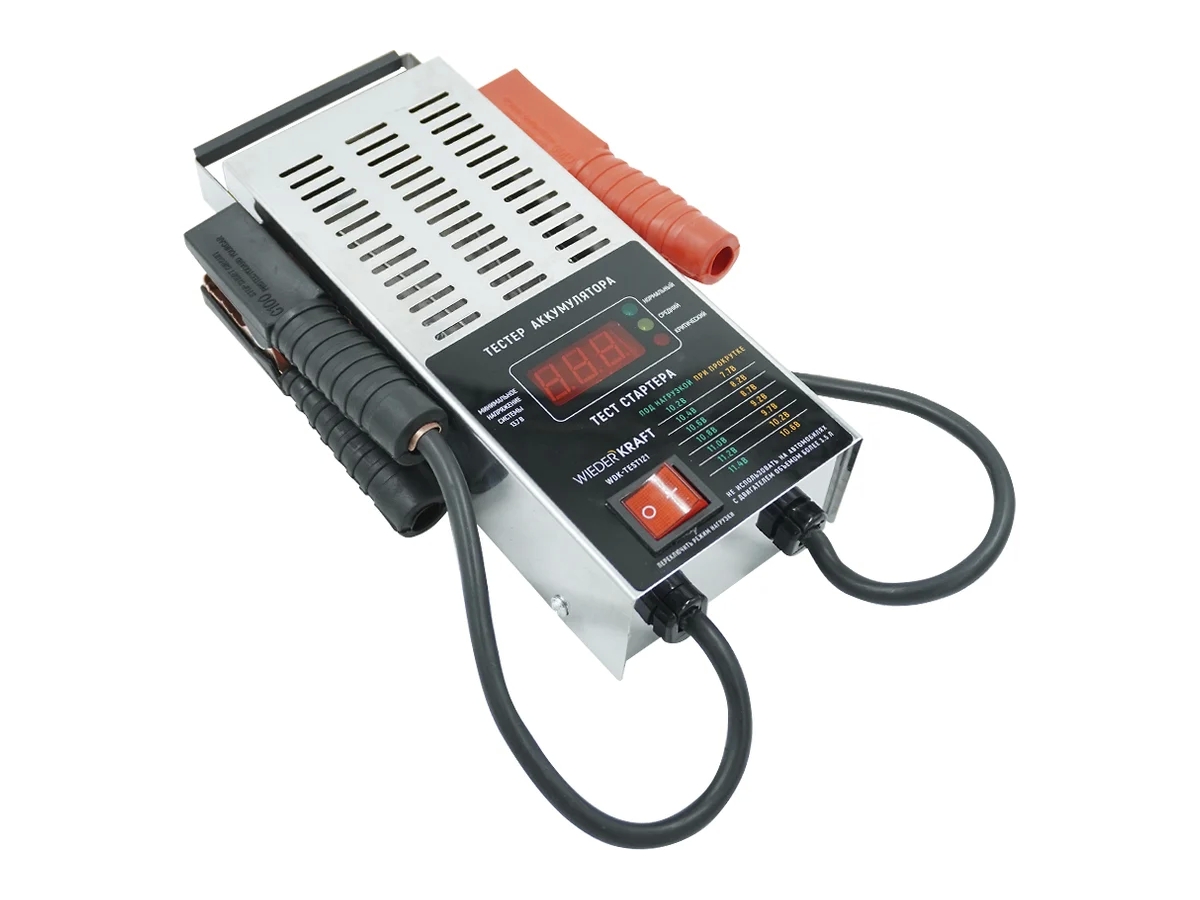 Нагрузочная вилка цифровая 12В, 100А WiederKraft WDK-Test121 предназначена для проведения быстрой проверки и оценки состояния АКБ 12В легковых и легких коммерческих автомобилей, номинальной емкостью от 30 до 235 А*ч.