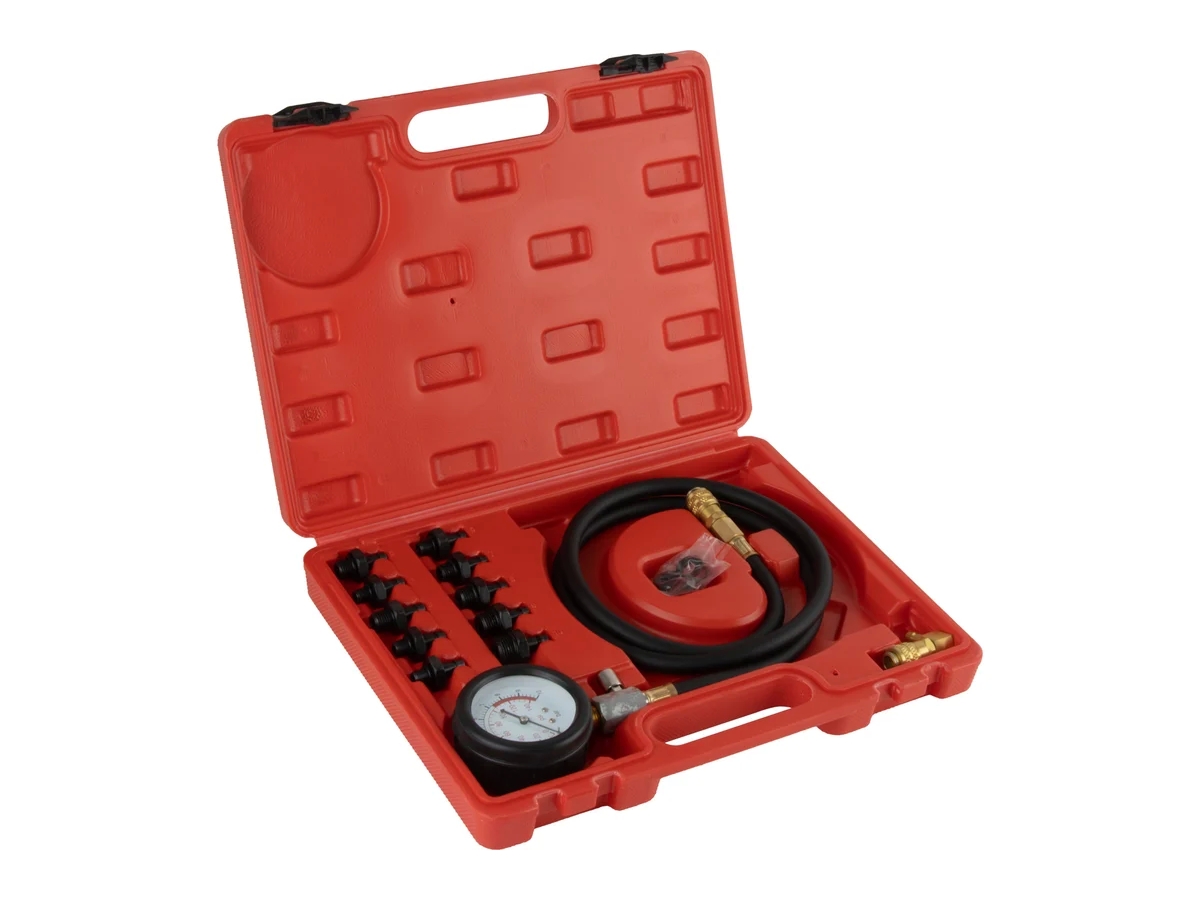 Тестер давления масла в двигателе WDK-214318 используется для диагностики и проверке состояния двигателя автомобиля в условиях автосервиса, мастерских и СТО. Тестер поставляется в наборе с 10 адаптерами, быстроразъемом и набором уплотнительных колец. Защитное резиновое покрытие на манометре защищает его от механических повреждений и поломки. Гибкий маслобензостойкий шланг оборудован фитингами БРС для быстрого и удобного подключения. Набор поставляется в прочном кейсе для удобства хранения.