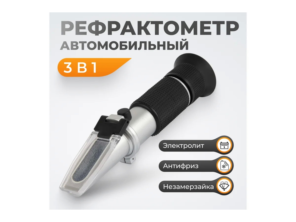 РефрактометрWDK-214085 - портативный оптический прибор для определения точки замерзания охлаждающей жидкости, жидкости для омывания стекол и плотности электролита (антифриз, незамерзающая жидкость, электролит). Также используется для экспресс-анализа температуры кристаллизации. Рефрактометр прост в использовании и имеет высокую точность измерений.