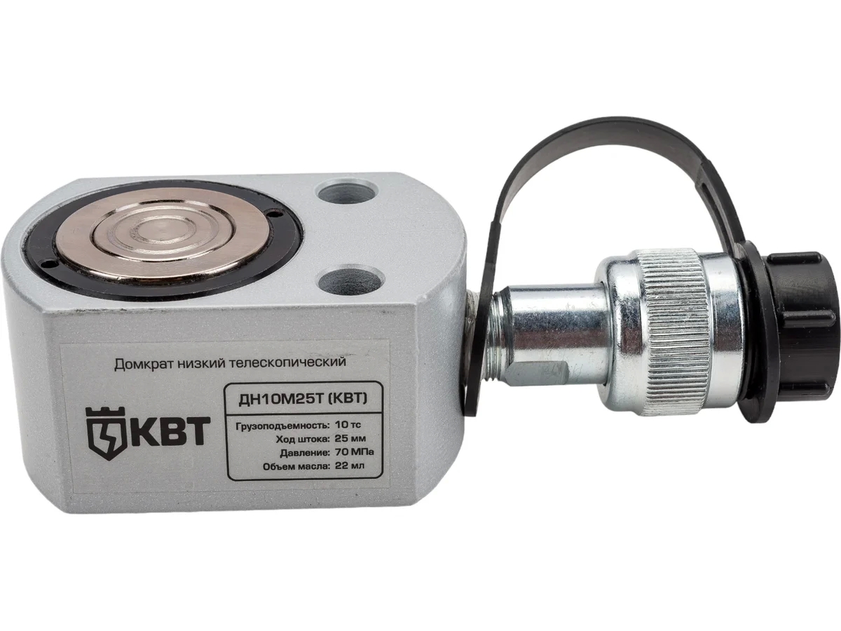 Домкрат КВТ ДН10М25Т низкий, телескопический 84593 предназначен для подъема и перемещения груза при выполнении монтажно-демонтажных, ремонтных и других видов работ, в том числе и в ограниченном пространстве. Максимальное давление: 700 бар (70 Мпа).