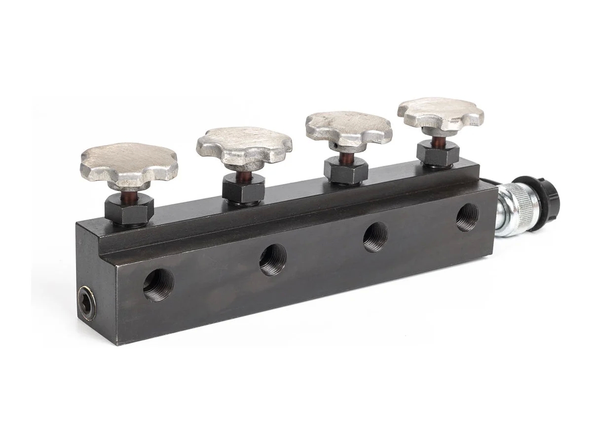Распределительный кран КВТ КГР-4 85077 предназначен для подключения гидравлических систем, состоящих из нескольких гидравлических устройств с возможностью регулирования очередности их работы.