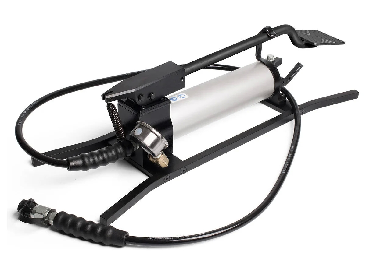 Гидравлическая ножная помпа КВТ ПМН-7012А 76642 служит для нагнетания давления жидкости в процессе работы с гидроинструментом помпового типа. Для быстрого сброса давления предусматривается автоматический клапан. Максимальное давление достигает 700 бар. Для визуального контроля параметров есть манометр. Корпус оборудования выполнен из легкого алюминия.
