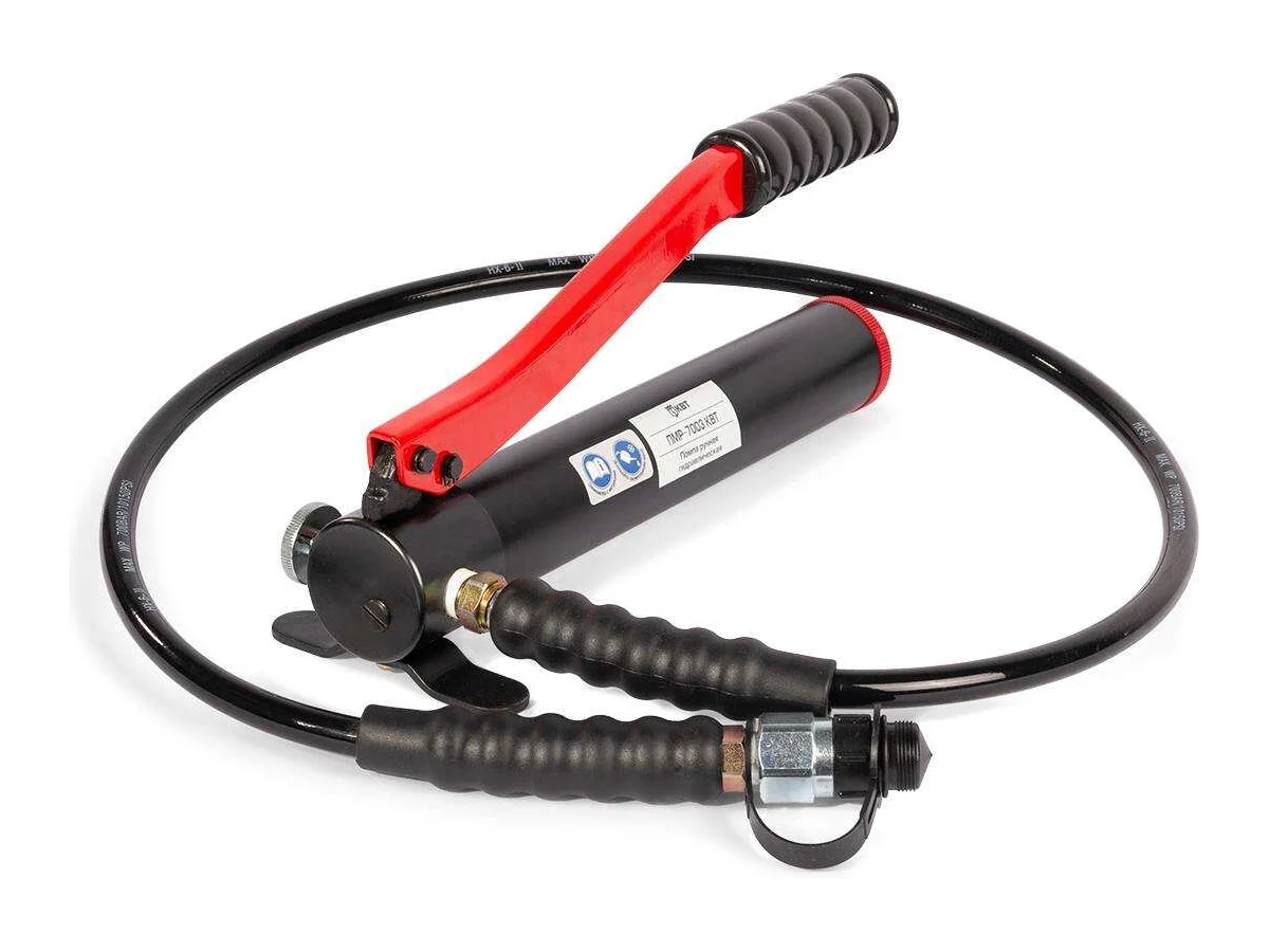 Гидравлическая ручная помпа КВТ ПМР-7003 69284 - современный агрегат, который используется в автомастерских, а также станциях технического обслуживания. Устройство изготовлено из высококачественных и прочных материалов, что гарантирует его долгий срок службы. Принудительный сброс давления осуществляется при помощи удобной рукоятки ручного управления. Помпа развивает давление в 70 МПа.