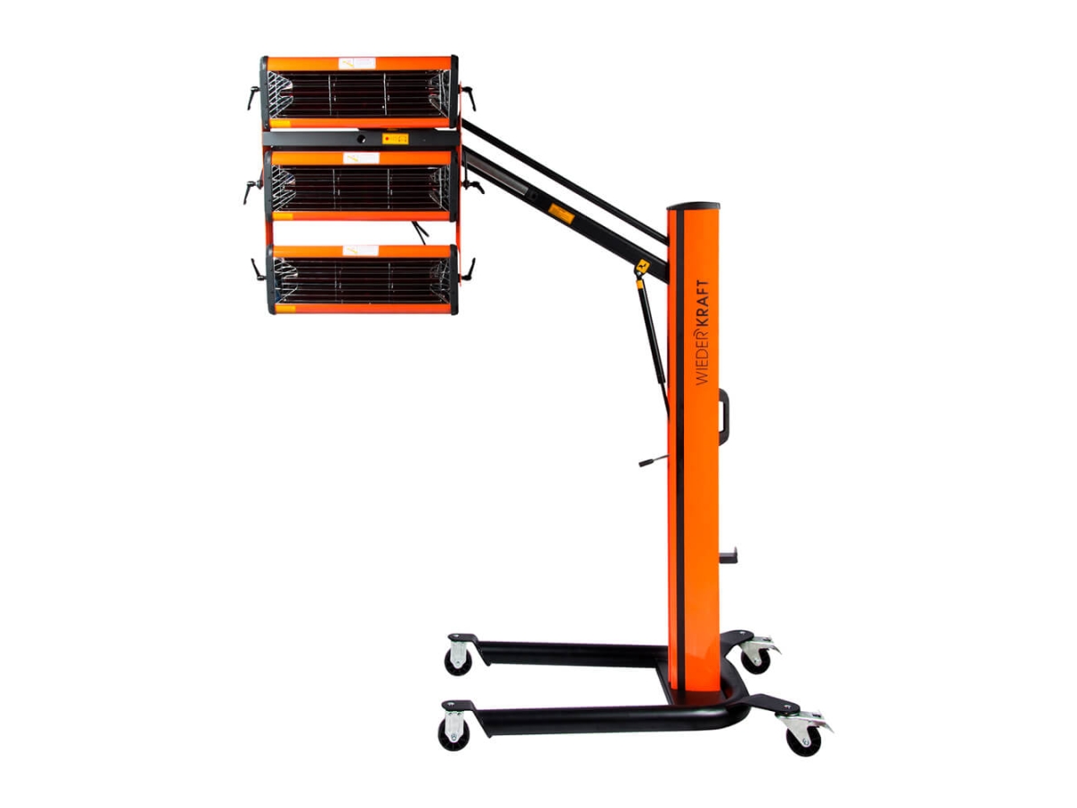 Трехкассетная сушка мобильная ИК WIEDERKRAFT WDK-3C оснащена тремя дисплеями: таймер, регулятор мощности, датчик расстояния. Стойка изготовлена таким образом, чтобы без вероятности падения поднимать на высоту до 2300 мм кассетный блок. Направление и положение кассет можно регулировать отдельно. Заданное положение блока удерживается за счет использования газового амортизатора. Мобильность конструкции достигается за счет наличия четырех колес.
