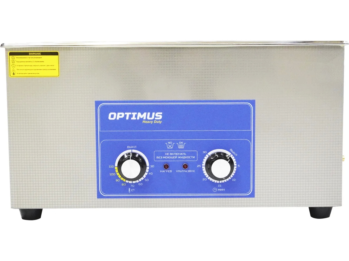 Ультразвуковая ванна OPTIMUS OPT-UC220 для очистки различных деталей, узлов и механизмов от загрязнений путем воздействия высокочастотных ультразвуковых колебаний в моющем растворе. Мойка оснащена механическим таймером до 30 минут и подогревом до 80 °C. Подогрев способствует ускорению физических процессов, сокращается время очистки предметов. Мойка укомплектована корзиной, ножки которой имеют резиновое покрытие, защищающее поверхность бака от механических повреждений. Спусковой кран, к которому в комплекте предусмотрен шланг, упрощают процесс слива раствора из устройства. Корпус выполнен из качественной нержавеющей стали, что способствует увеличению срока эксплуатации.