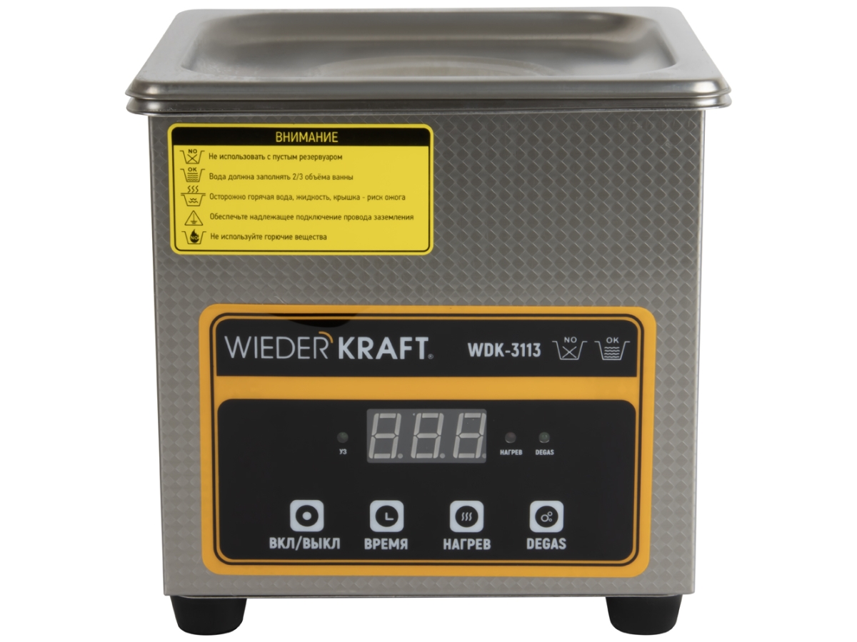 Ультразвуковая ванна WIEDERKRAFT (мойка) 1,3 литра WDK-3113 предназначена для очистки мелких деталей, узлов и механизмов от различных загрязнений. Очистка осуществляется засчёт ультразвуковых колебаний, создающих эффект кавитации — образование и схлопывание микроскопических пузырьков, которые удаляют грязь даже в труднодоступных местах.
