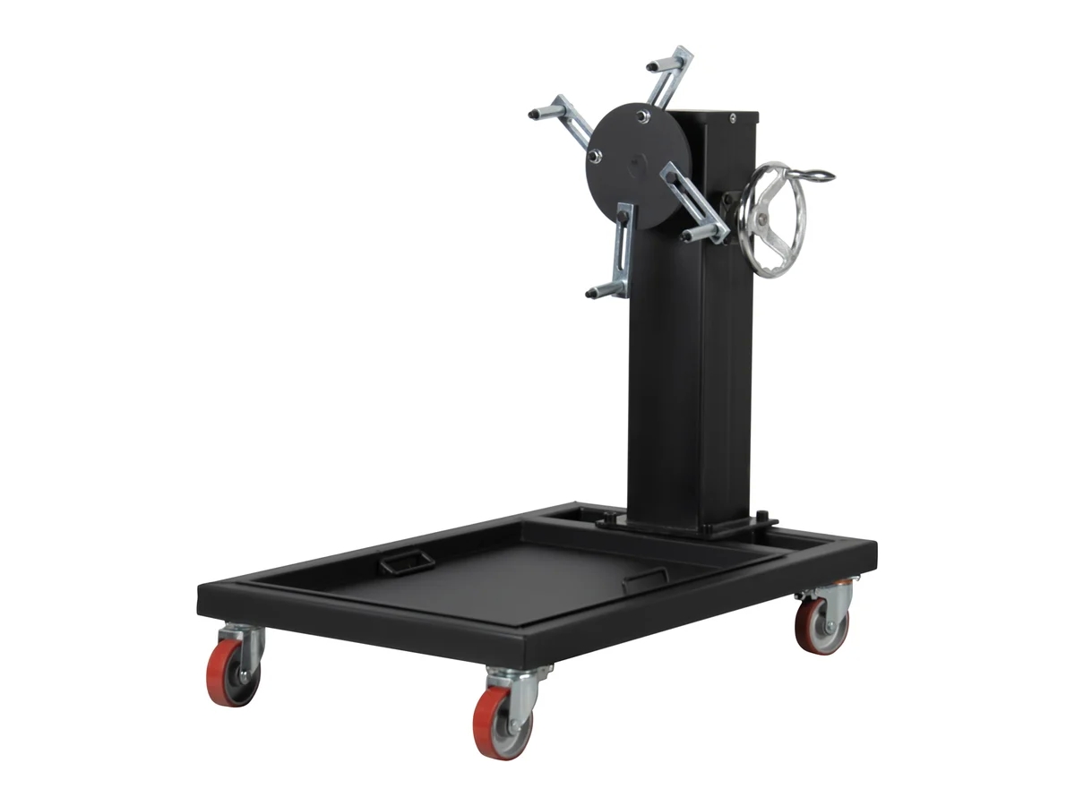 Прочная стальная конструкция кантователя выдерживает нагрузку до 500 кг, а встроенный съемный масляный поддон позволяет комфортно сливать технические жидкости без загрязнения рабочей зоны.