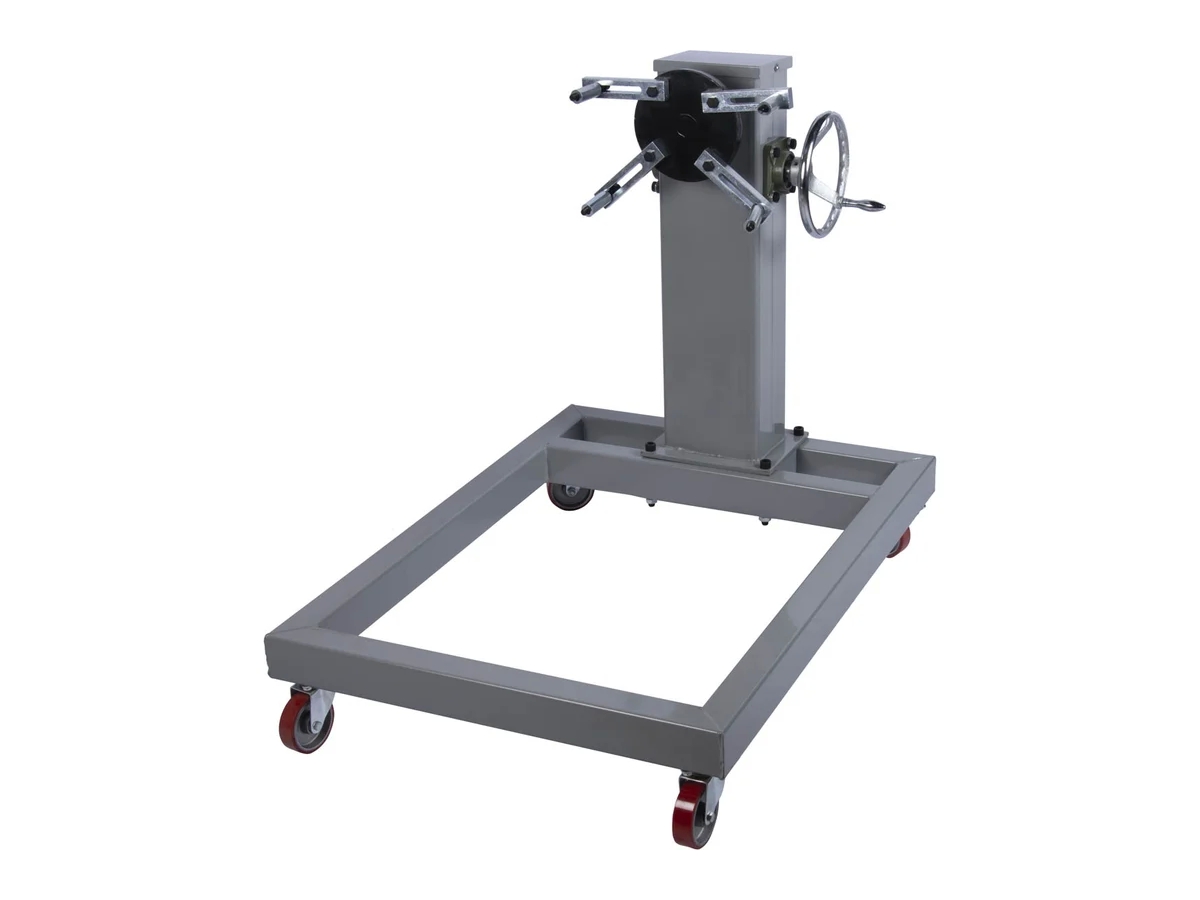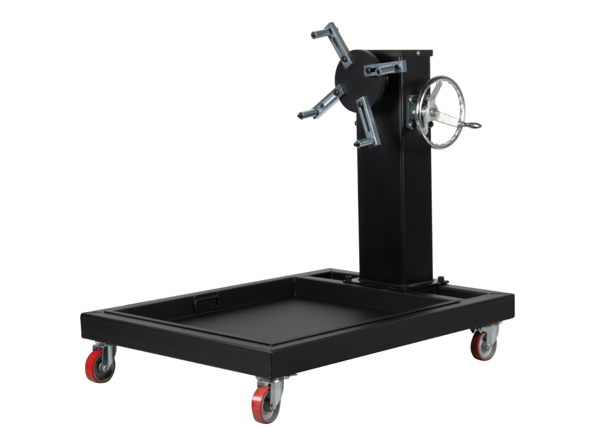 Прочная стальная конструкция кантователя выдерживает нагрузку до 800 кг, а встроенный съемный масляный поддон позволяет комфортно сливать технические жидкости, сохраняя рабочее место в чистоте.