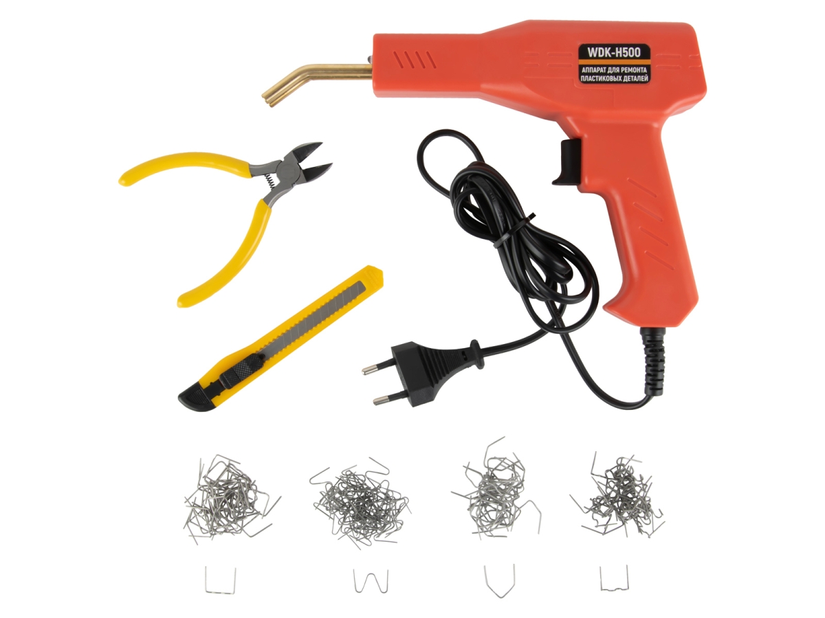 Аппарат WIEDERKRAFT WDK-H500 предназначен для ремонта трещин, сколов и сломов в автомобильных пластиковых деталях. За счет электрического импульса скоба из нержавеющей стали нагревается до красна и вплавляется в пластик, создавая прочное соединение. После восстановления элементы приобретают устойчивость к ударам и скручиванию. Аппарат широко применяется для ремонта бамперов, креплений, фар, элементов салона и других пластиковых изделий автомобиля. Подходит также для восстановления пластиковых элементов мотоциклов, скутеров, бытовой техники и прочих изделий из пластика.