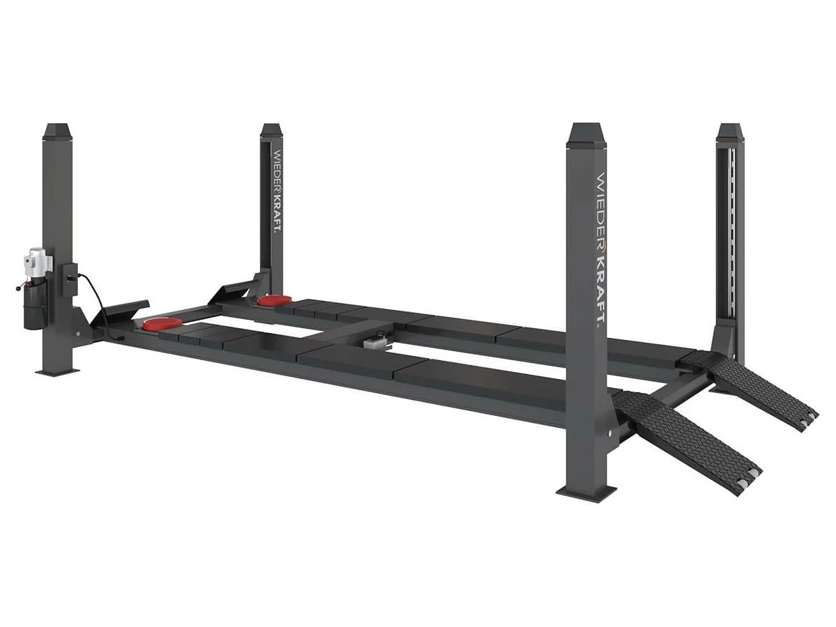 Гидравлический четырехстоечный подъемник WIEDERKRAFT 5.5 т, 380V WDK-546 подходит для обслуживания легковых автомобилей, коммерческого транспорта и длиннобазных автомобилей, минивэнов и легких грузовиков. Благодаря специальному оснащению используется как подъемник для проверки и регулировки «сход-развала». Может также использоваться как слесарный подъемник.