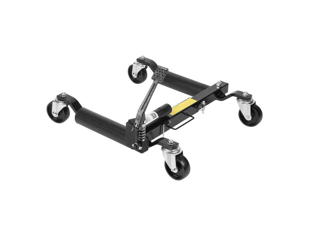 Гидравлическая тележка WDK-80325H предназначена для перемещения автомобилей с заблокированными или отсутствующими колесами, а также для транспортировки машин со сломанными элементами подвески или АКПП в ограниченном пространстве. Грузоподъемность составляет 680 кг, что позволяет работать с легковыми автомобилями, микроавтобусами, внедорожниками и легкими грузовиками типа «Газель». Для разворота авто достаточно 2 тележек, а для полноценного перемещения рекомендуется использовать 4 — по одной под каждое колесо.