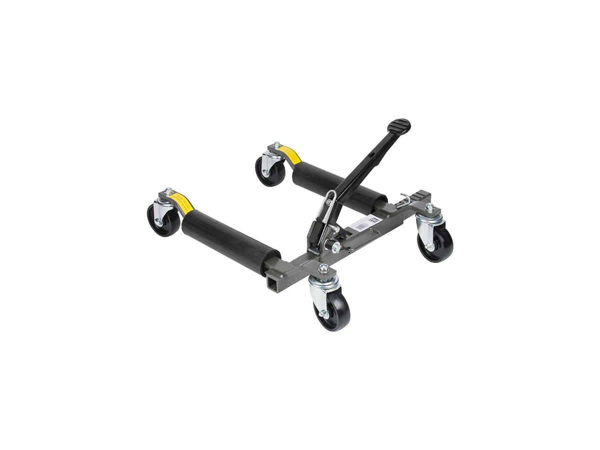 Механическая тележка WDK-80325M предназначена для перемещения автомобилей с заблокированными или отсутствующими колесами, а также для транспортировки машин со сломанными элементами подвески или АКПП в ограниченном пространстве. Грузоподъемность составляет 680 кг, что позволяет работать с легковыми автомобилями, микроавтобусами, внедорожниками и легкими грузовиками типа «Газель». Для разворота авто достаточно 2 тележек, а для полноценного перемещения рекомендуется использовать 4 — по одной под каждое колесо.