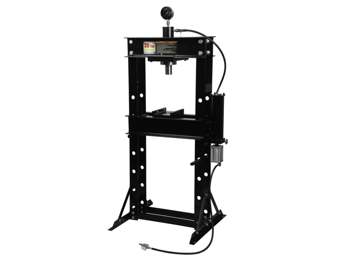 Профессиональный пневмогидравлический пресс WiederKraft WDK-HP301 с усилием 30 тонн предназначен для выпрессовки, запрессовки и других операций с деталями в автосервисах, СТО и на промышленных объектах. Станок оснащен ручным гидравлическим приводом и пневматическим насосом, который работает от источника сжатого воздуха, ускоряя выполнение операций. Пресс снабжен виброустойчивым глицериновым манометром для контроля давления штока.