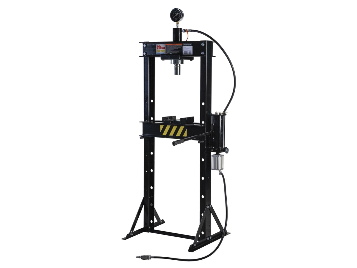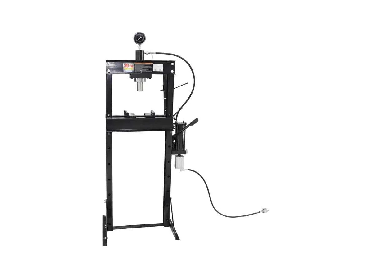 Профессиональный напольный пресс WiederKraft WDK-HP201 с усилием 20 тонн предназначен для выпрессовки, запрессовки и других операций в машиностроении и металлообработке. Станок оснащен ручным гидравлическим приводом и пневматическим насосом, который работает от источника сжатого воздуха, ускоряя выполнение операций. Пресс снабжен глицеринозаполненным виброустойчивым манометром для контроля давления штока.