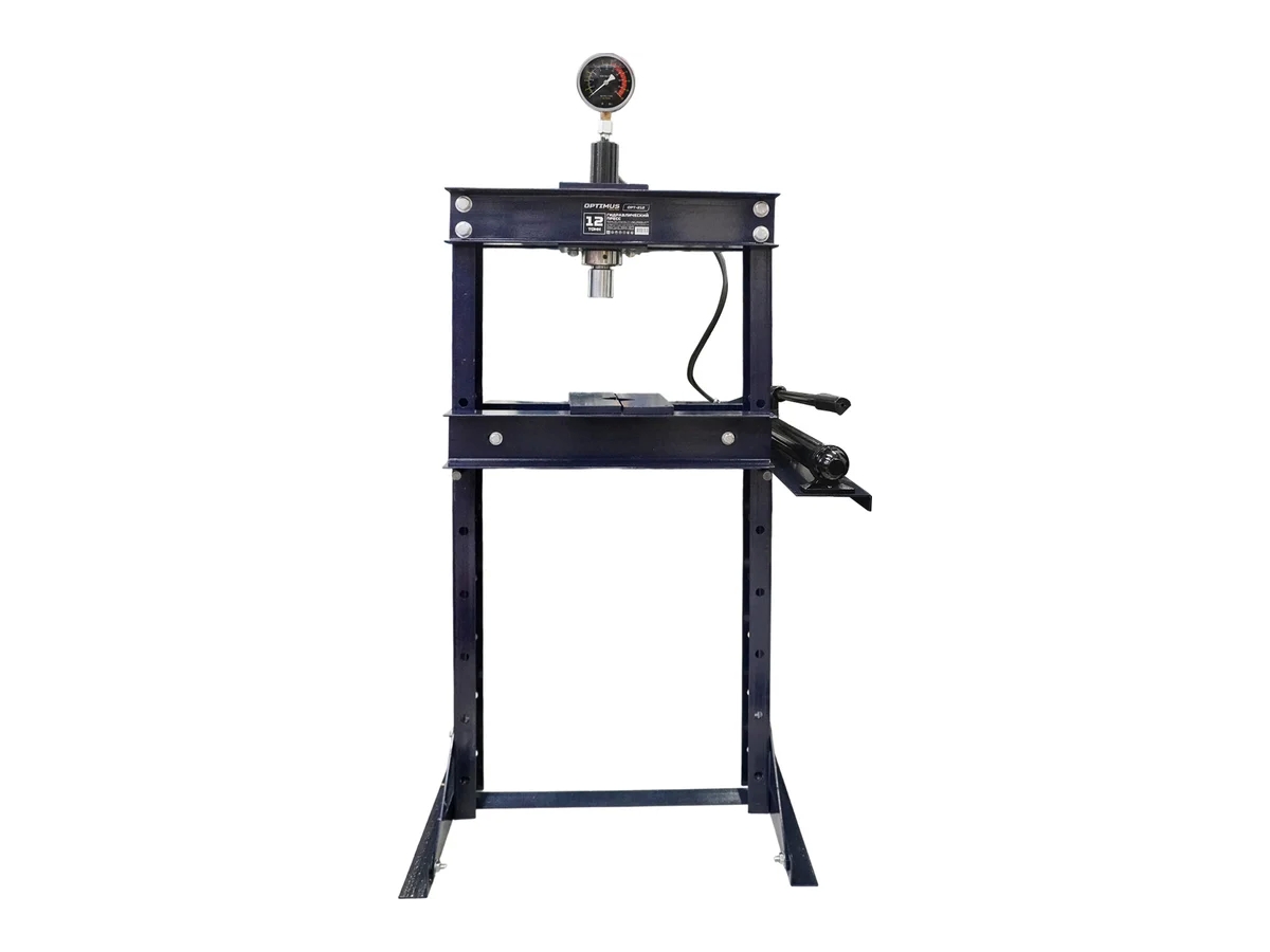 Напольный гидравлический пресс Optimus OPT-212 обеспечивает усилие до 12 тонн с ручным приводом. Подходит для большинства типовых задач по запрессовке и выпрессовке деталей. Цилиндр имеет возможность горизонтального перемещения для работы по всей плоскости стола. Жидкостный манометр защищен от гидроудара, упрощает контроль за развиваемым усилием. Рабочий стол регулируется по высоте от 90 до 810 мм, позволяет устанавливать детали различных габаритов.