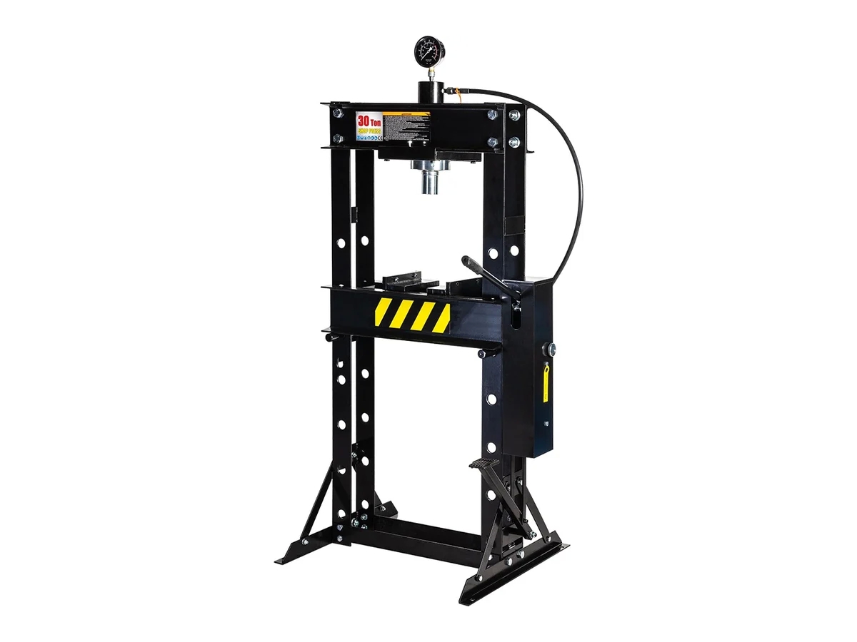 Напольный пресс с гидравлическим приводом и педалью WiederKraft WDK-HP301F применяется для запрессовки деталей, в металлообработке и машиностроении. Рабочий ход поршня пресса составляет 150 мм. Эта модель является простой в работе и обслуживании. Жесткая рама пресса отличается повышенным уровнем прочности.