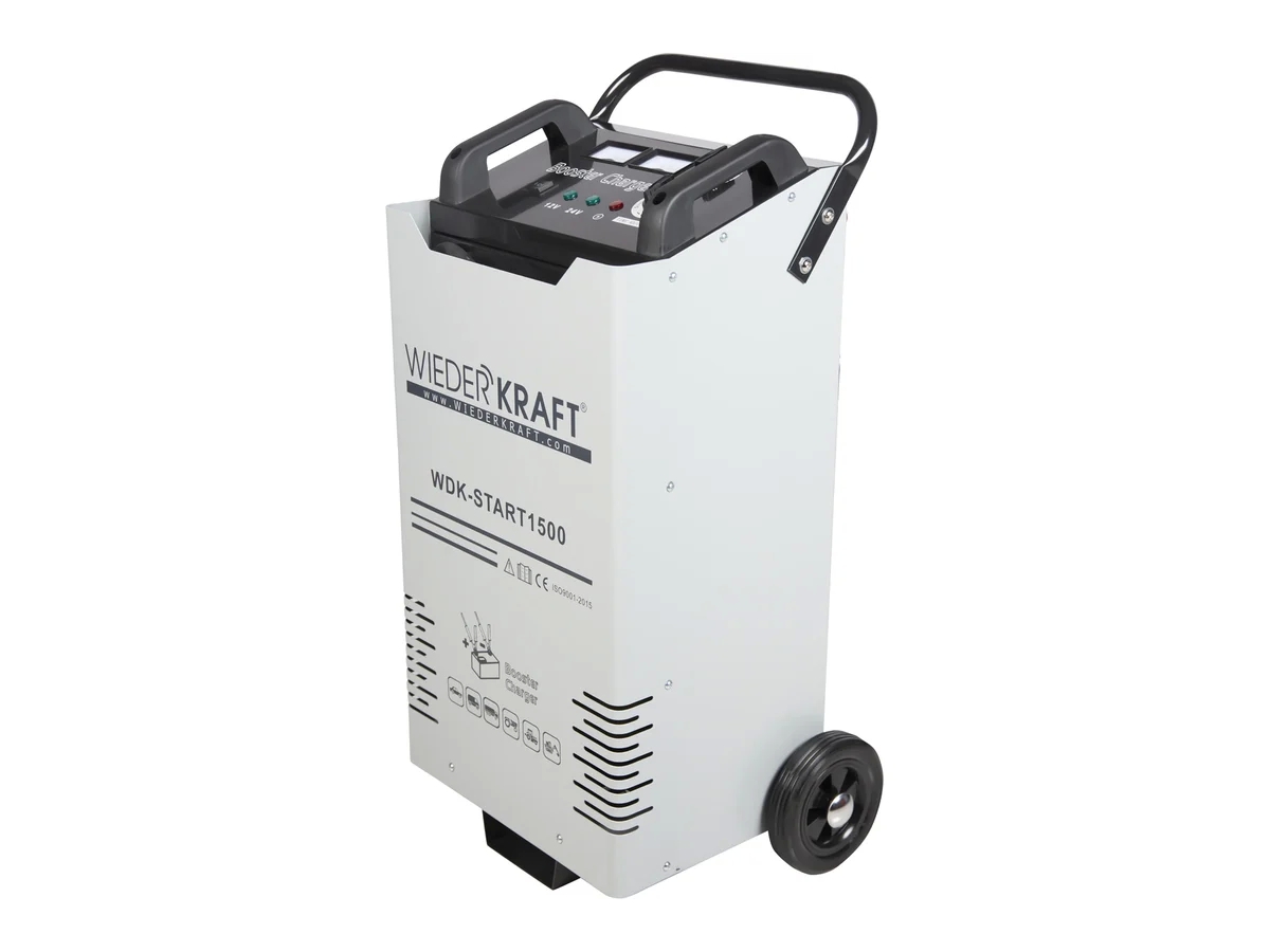 Пуско-зарядное устройство для запуска/зарядки аккумуляторов WIEDERKRAFT, 12/24в WDK-Start1500 предназначено для зарядки свинцовых и гелевых аккумуляторов с напряжением 12 В и 24 В для запуска бензиновых и дизельных двигателей мотоциклов, легковых и грузовых автомобилей, строительной и сельскохозяйственной техники. Доступны быстрая и медленная зарядка. Напряжение зарядки и ток отображаются в режиме реального времени
