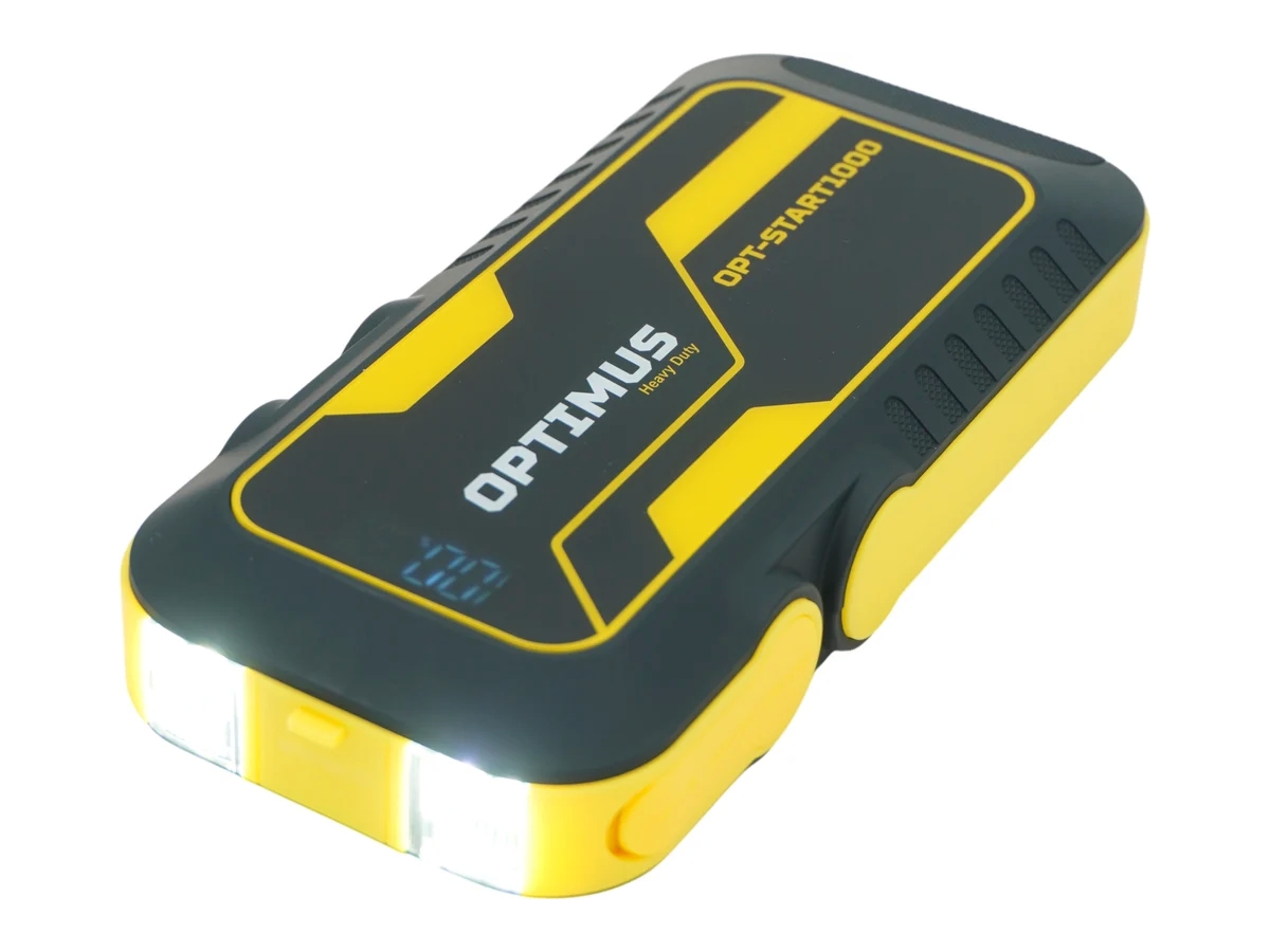 Пусковое устройство для автомобиля 2000А, 16000 мА*ч OPTIMUS HD OPT-Start1000 позволяет запустить любой автомобиль с разряженным аккумулятором 12В в морозы до -25°С. Подходит для двигателей объемом до 7 литров (бензин) и до 5 литров (дизель).