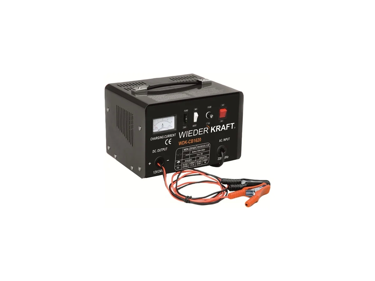 Зарядное устройство для аккумуляторов WIEDERKRAFT 12/24В, до 250 А/ч, 2 режима, 20А WDK-CB1620 имеет в своей основе высококачественный силовой трансформатор и прецизионную систему контроля выходного напряжения. Защищен от перегрузок по входным и выходным цепям, работает в широком диапазоне входных напряжений.