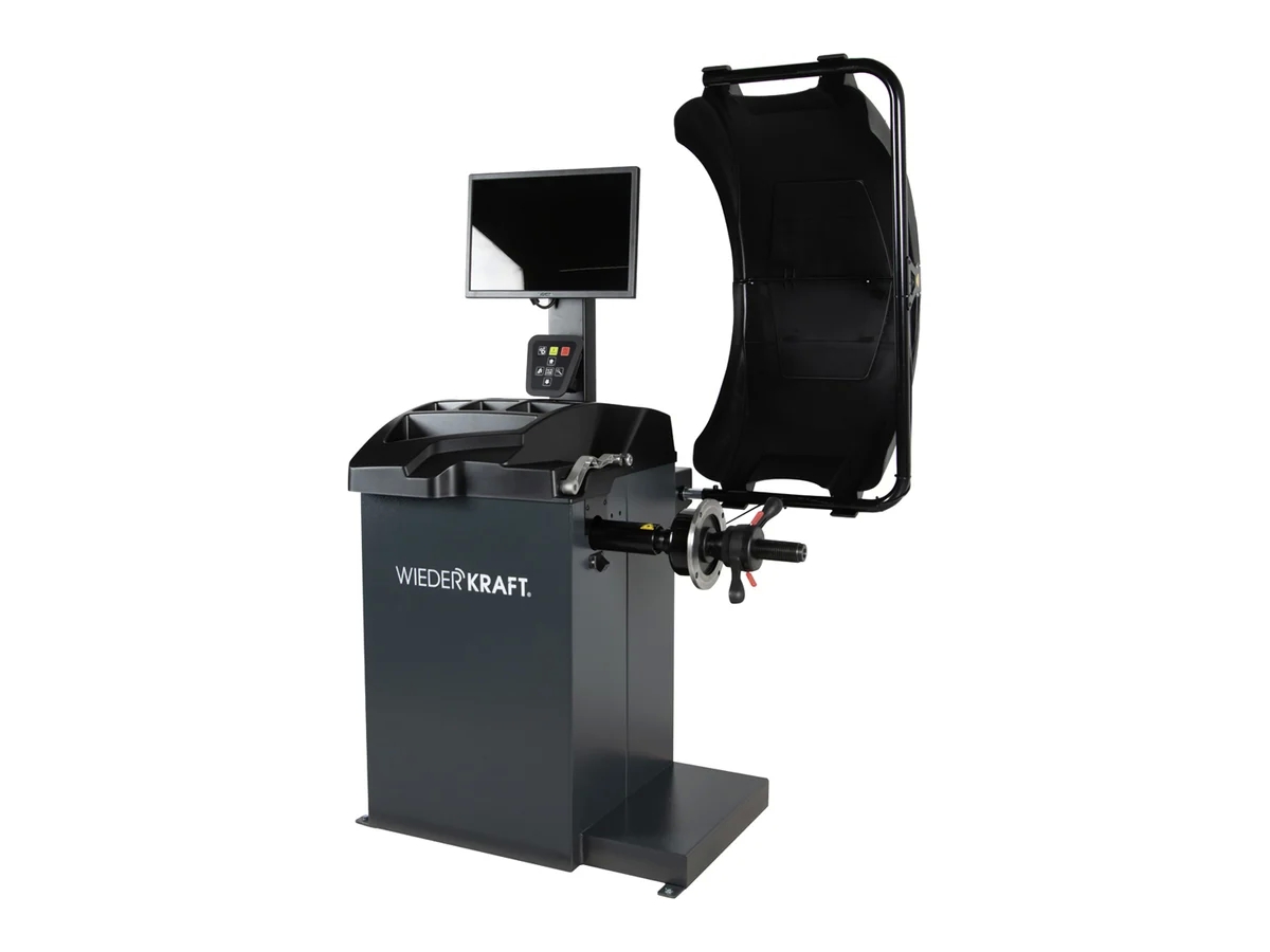 Балансировочный станок предназначен для измерений дисбаланса и балансировки колес легковых автомобилей с дисками диаметром от 10 до 24 дюймов на автотранспортных предприятиях, станциях технического обслуживания и ремонта автомобиля, станциях и пунктах диагностики автомобилей. Станок оснащен электронной линейкой для автоматического измерения диаметра колеса и дистанции. Процесс измерения дисбаланса, в зависимости от настроек, может запускаться как с кнопки, так и опусканием защитного кожуха.