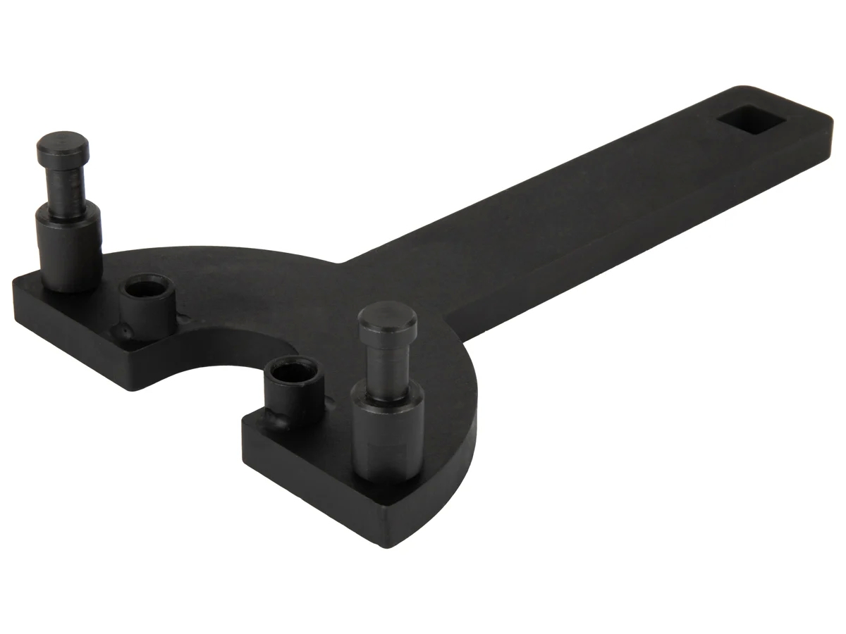 Профессиональное приспособление WDK-214123 предназначено для фиксации шкива коленвала при обслуживании автомобилей марки Volkswagen, Audi и Skoda с бензиновыми двигателями объемом 1.2, 1.4, 1.6 л. Фиксатор обеспечивает надежное удержание шкива при ослаблении или затягивании центрального болта, предотвращая его проворачивание и повреждение деталей. Ключ-фиксатор и штифты изготовлены из инструментальной стали, обладают повышенной прочностью и долговечностью.
