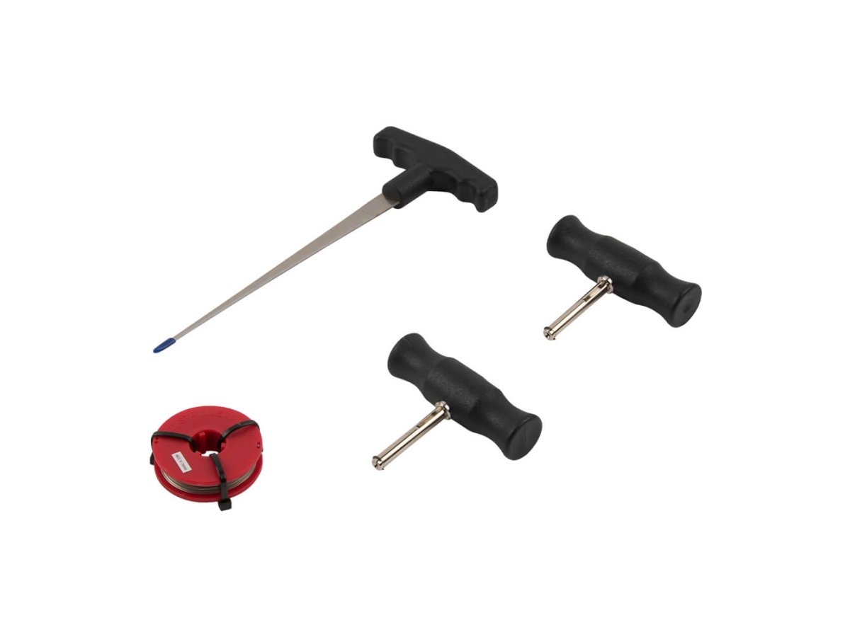 Набор для замена стекол автомобиля WIEDERKRAFT WDK-65508 представляет собой комплект изделий, выполненных из прочных материалов. В наборе 4 предмета для демонтажа вклеенных стекол автомобиля. Рукоятки для струны имеют Т-образную форму. Струна служит для срезания клеевого слоя.