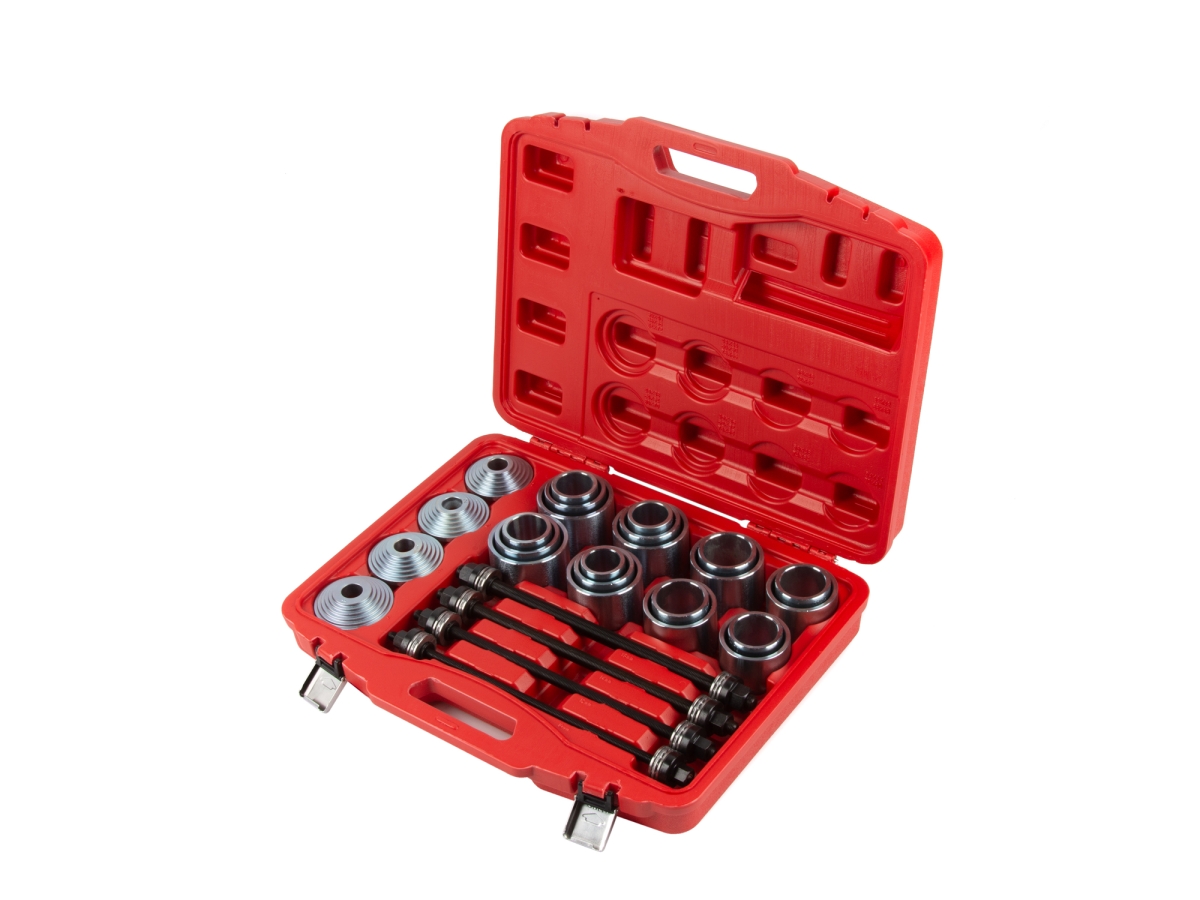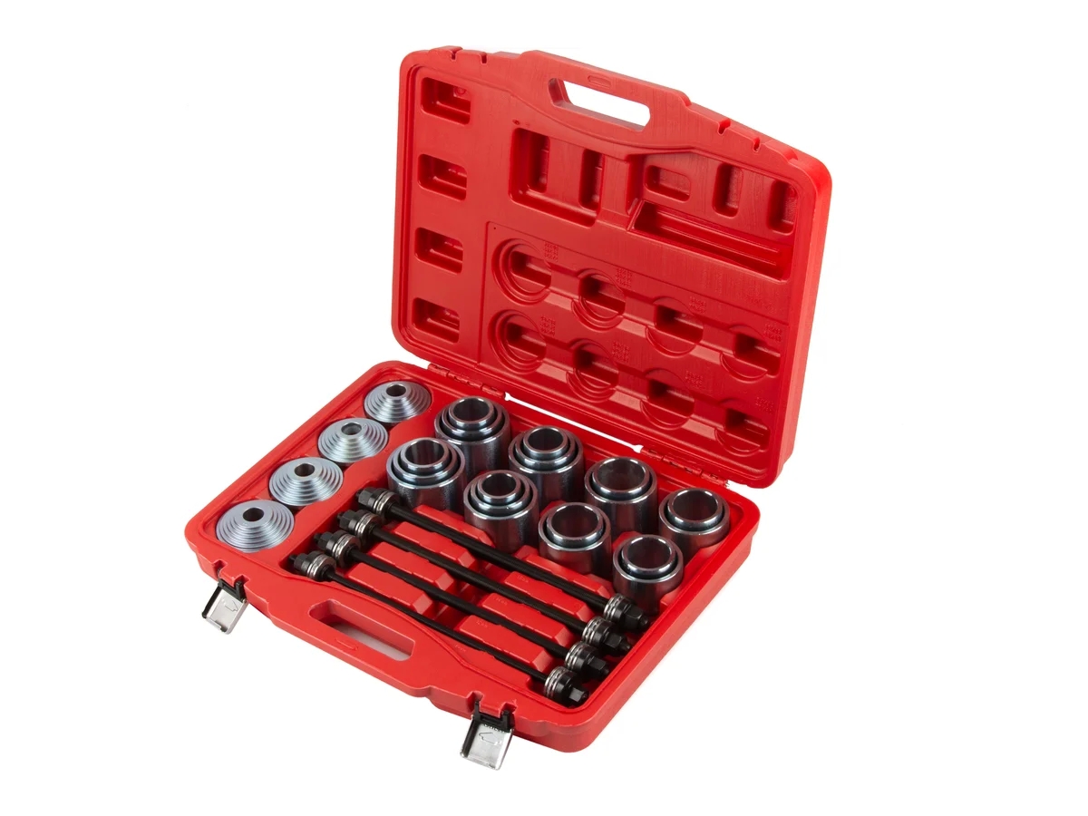 Набор для снятия и установки сайлентблоков и подшипников ступиц WIEDERKRAFT WDK-214200 используется для выпрессовки и запрессовки сайлентблоков, для монтажа и демонтажа подшипников, втулок, сайлентблоков, а также подшипников с резиновой втулкой. Изделия изготовлены из высокопрочной стали. Поставляется набор в удобном переносном кейсе, который облегчает хранение и транспортировку.