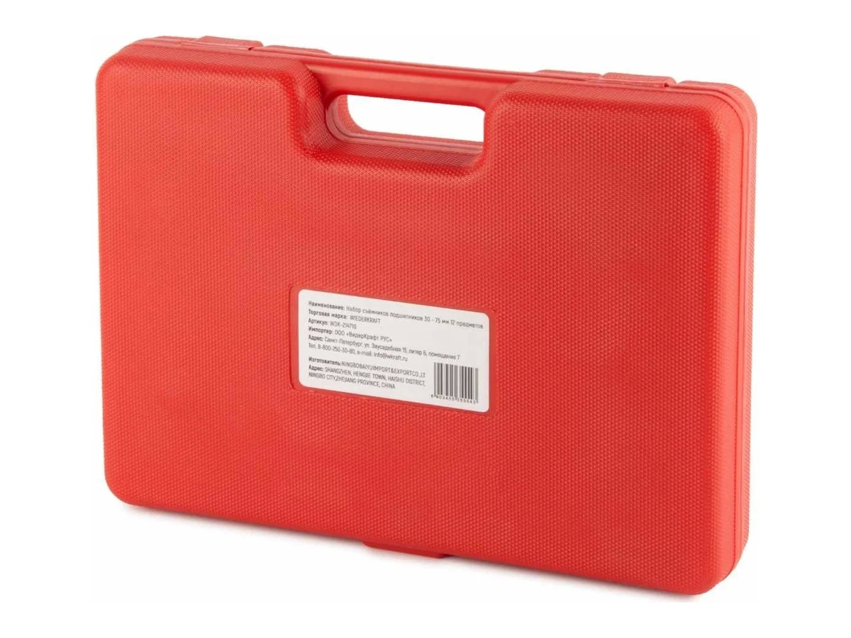 Набор съемников подшипников WIEDERKRAFT WDK-214710 предназначен для монтажа/демонтажа подшипников в диапазоне диаметров от 30 до 75 мм без повреждения сопряженных деталей. Используется в ремонтных и слесарных работах, а также в автомастерских и гаражах.