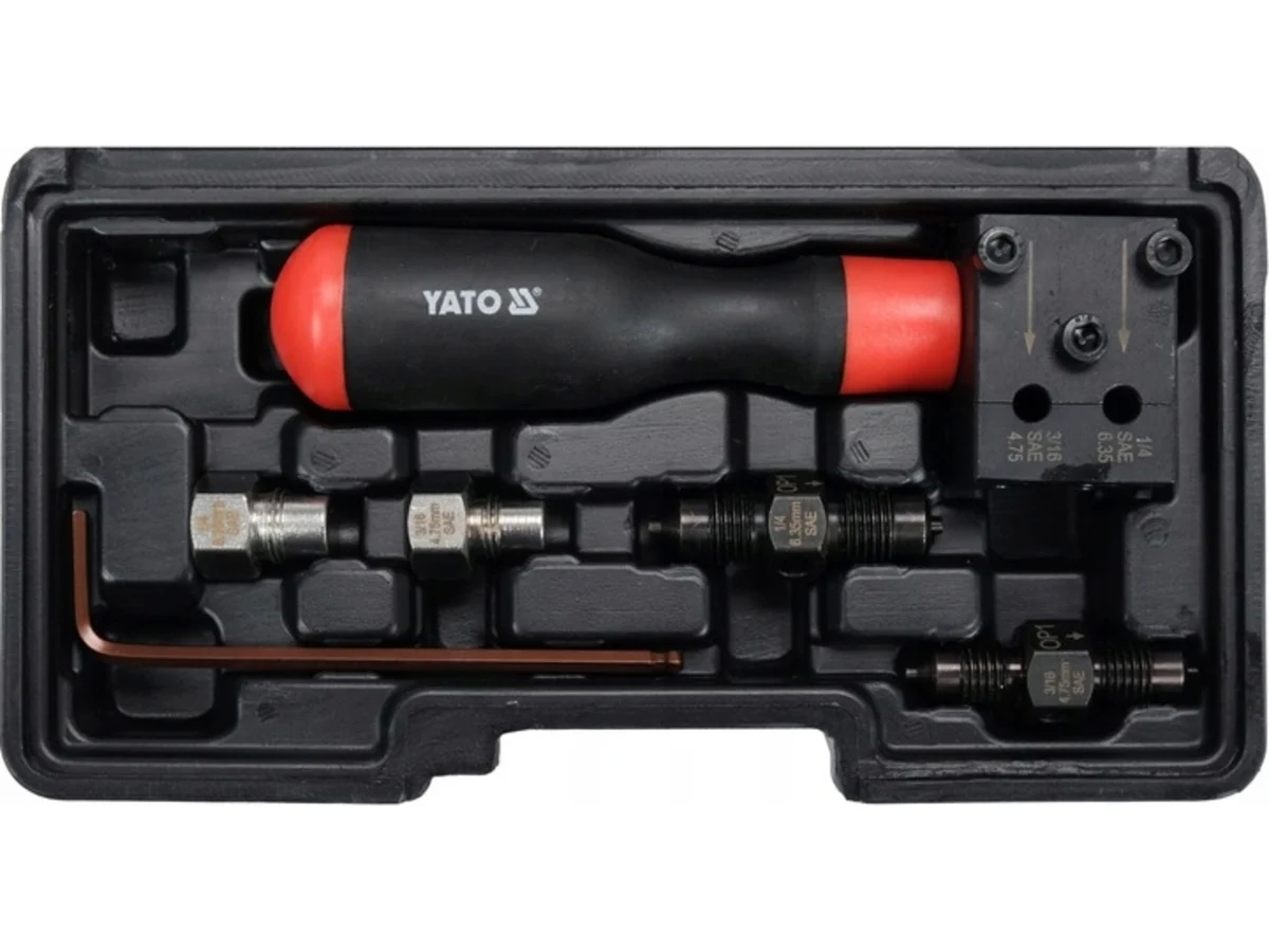 Ручной пресс для тормозных шлангов YATO YT-06086 предназначен для опрессовки концов стальных, медных, алюминиевых и бронзовых тормозных шлангов.