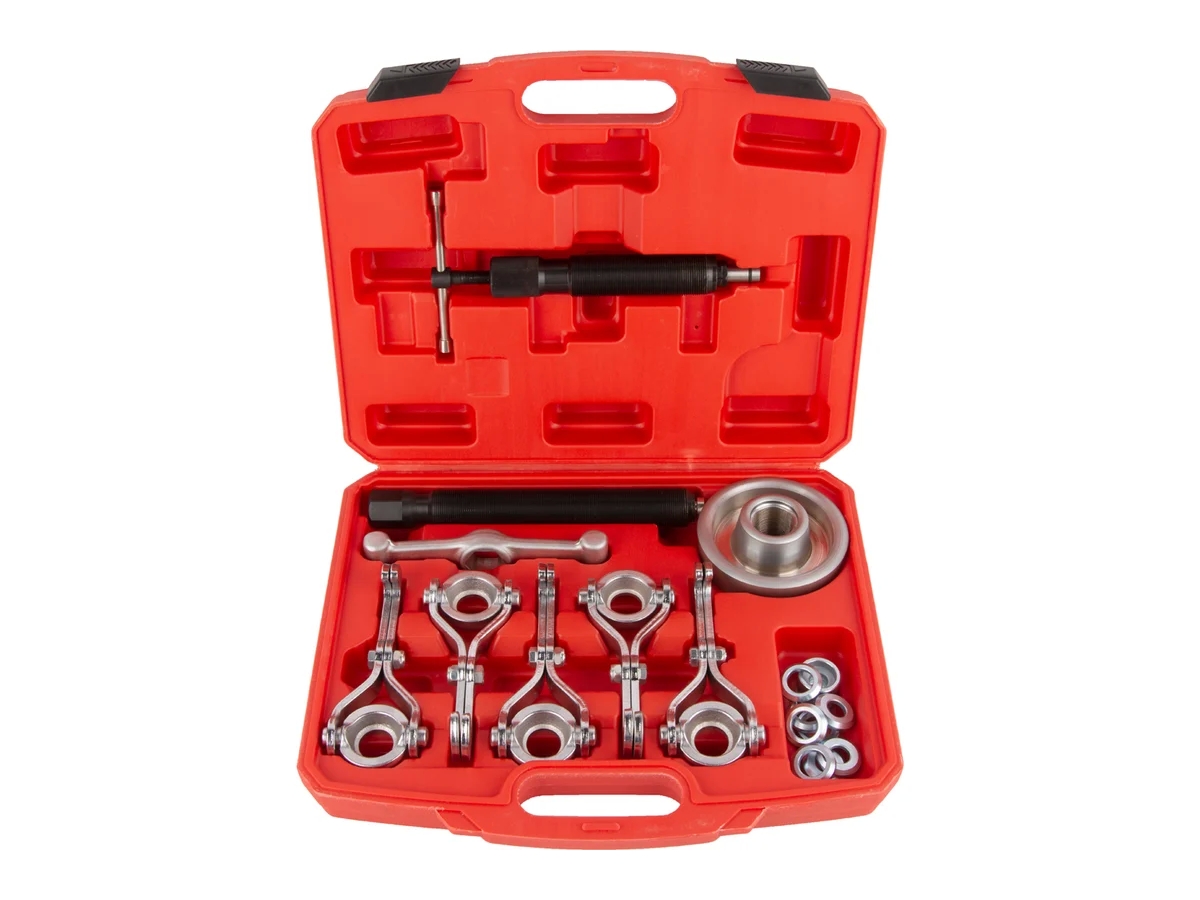 Подходит для снятия ступиц с 3-5 шпильками, тормозных дисков и барабанов, а гидравлический цилиндр на 10т, который идет в комплекте, позволяет, не применяя ударный инструмент, снять даже плотно прикипевшие детали.