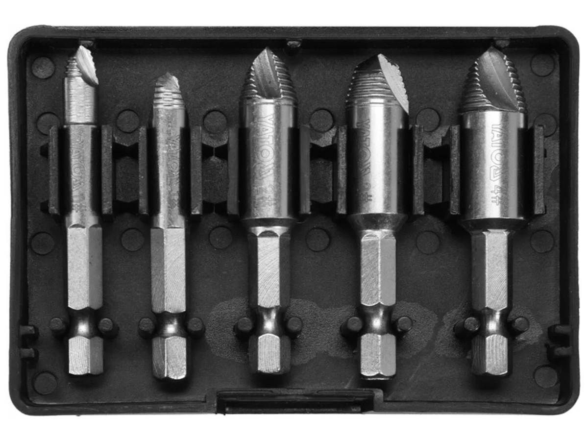 Профессиональный набор из 5 предметов для удаления сломанных винтов. Содержит экстракторы самых популярных диаметров, что делает его незаменимым в мастерской или автосервисе.