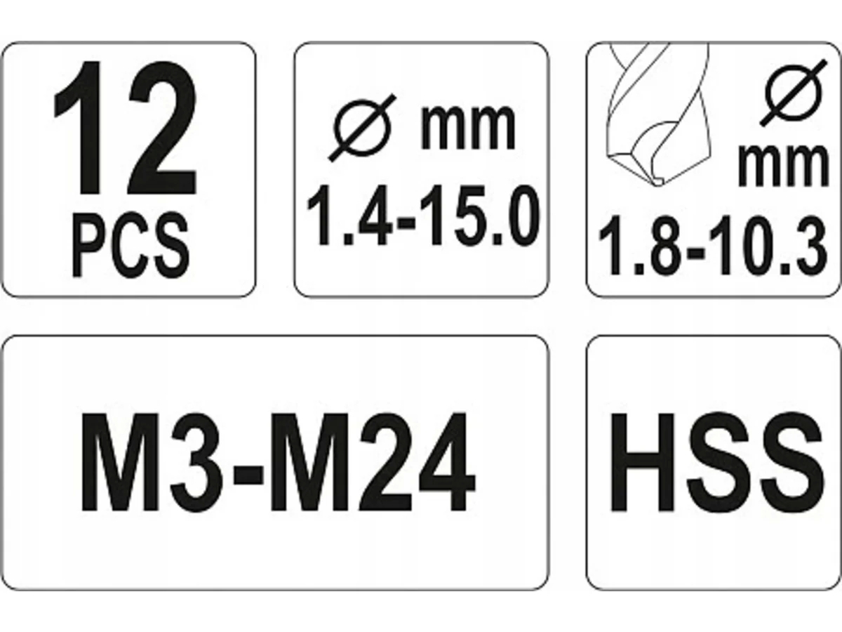 Экстракторы для сломанных винтов и сверла HSS по металлу, набор из 12 штук от Yato.