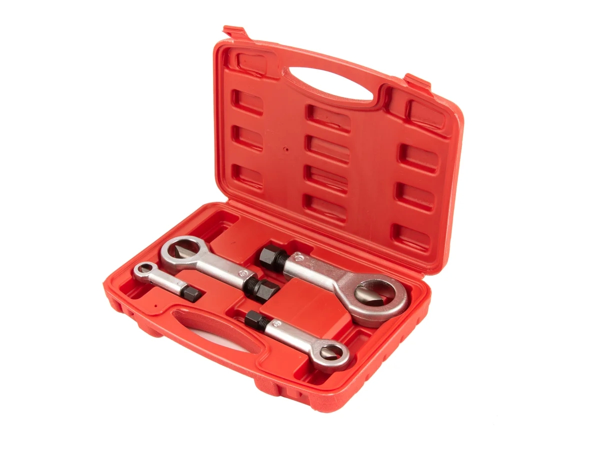 Гайколом WIEDERKRAFT 3-27 мм, набор 4 шт. WDK-214730 используется в сфере авторемонта для быстрого и аккуратного срезания заржавевших или окислившихся гаек. Конструкция ручного инструмента отличается простотой и прочностью. Каждый предмет лежит в специальном углублении кейса.