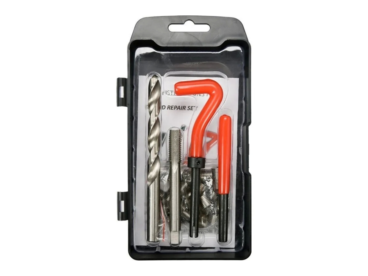 Набор для ремонта резьбы YATO М10x1,5мм YT-17634 предназначен для замены сломанной резьбы на новую. Элементы набора изготовлены из прочной нержавеющей стали.