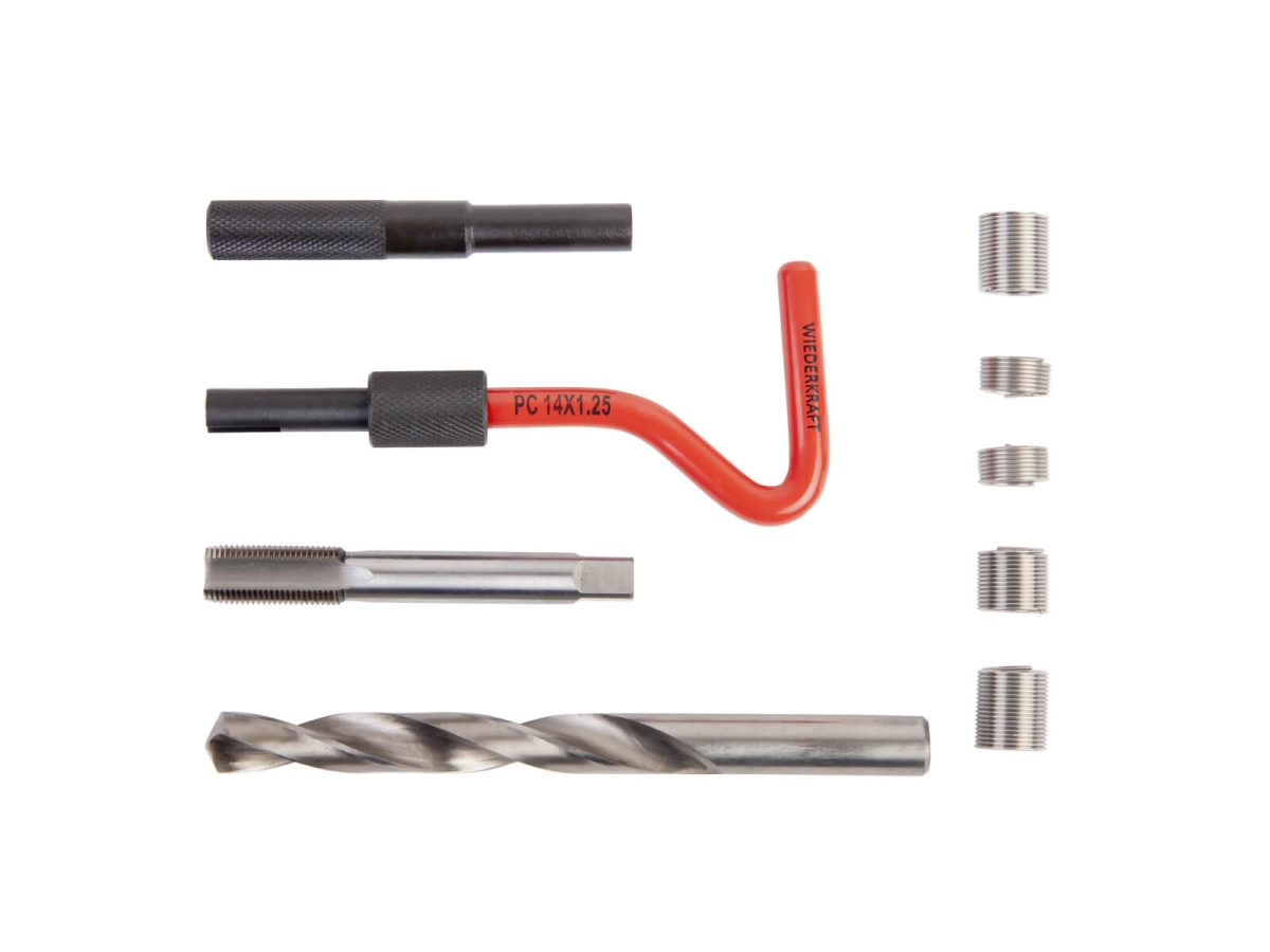 Набор для восстановления резьбы WIEDERKRAFT М14 M14x1.25 16 предметов WDK-ST1412 является лучшим современным решением по ремонту поврежденной резьбы или упрочнению имеющейся.