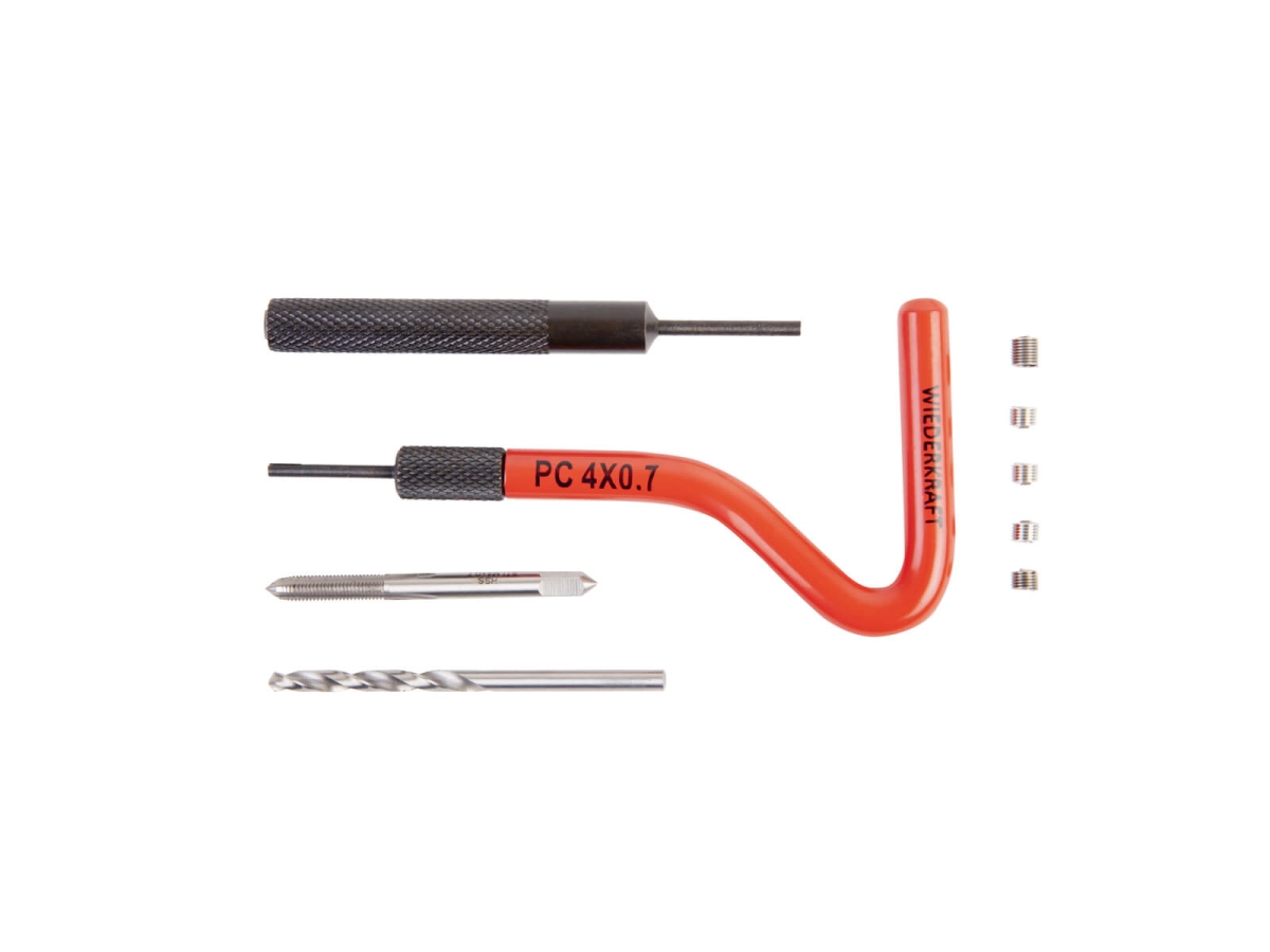 Набор WIEDERKRAFT для восстановления резьбы M4x0,7 является лучшим современным решением по ремонту поврежденной резьбы или упрочнению имеющейся.