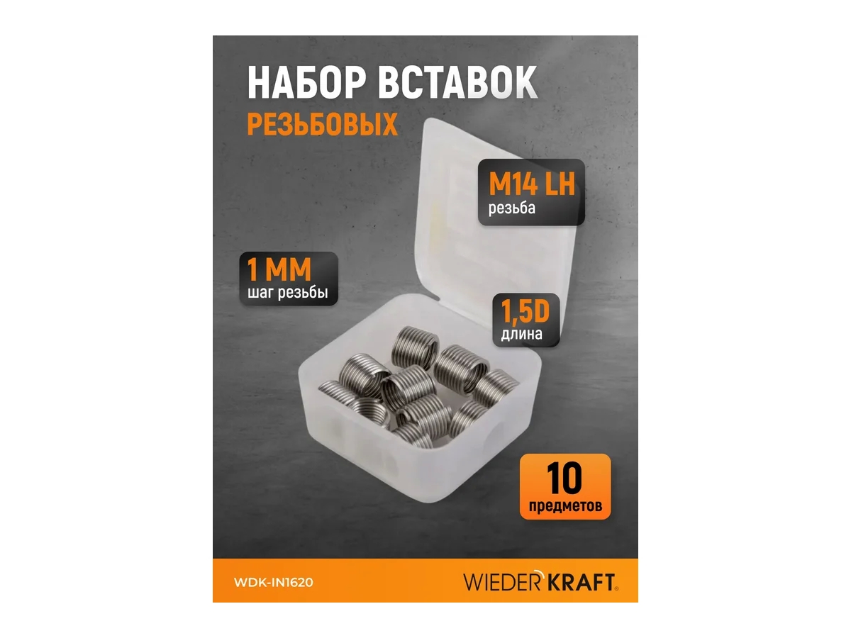 Набор вставок резьбовых для левой резьбы M14x1, 1,5d, 10 предметов WDK-INL1410