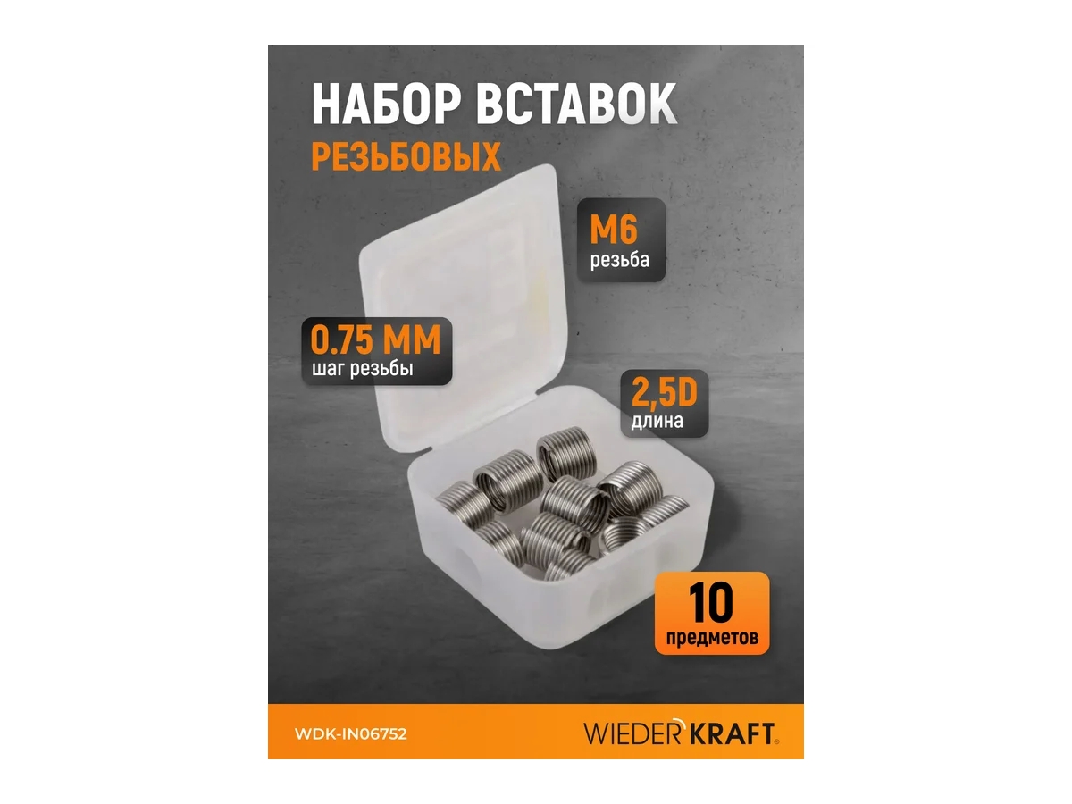 Набор вставок резьбовых M6x0.75, 2,5d, 10 предметов WDK-IN06752